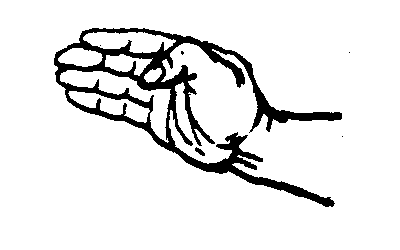 手型。四指微并拢,掌心涵空,拇指在中指末节处里扣,形如蛇头,故名。此手型多在蛇拳中出现。