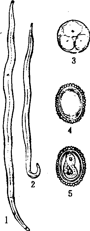 释义 | ![]() ![]() 蛔虫huíchóng寄生虫,像蚯蚓,白色或米黄色,寄生在人或某些家畜的小肠内,能引起多种疾病。 蛔虫huíchóng〈名〉一种寄生虫,能寄生在人(或某些动物)的肠壁上引起蛔虫病。 蛔虫huí chóng一种寄生虫。1909年钟观光《理科通证·动物篇·蛔虫》:“有数种特效药可以驱除蛔虫。”1906年《博物学教科书》第一编:“蠕虫类,蛔虫、沙蚕等皆属之。”1909年周树人《人生象学·本论》:“寄生物中要者有几,即绦虫类、蛲虫、蛔虫、血二口虫等多寓于人,肝二口虫多寓于兽。”◇腹虫。 古代名物 > 蟲豸類 > 雜蟲部 > 寄生蟲 > 蛕 > 蛔蟲 蛔蟲 huíchóng 亦作“回蟲”,亦稱“回仙”、“回老”、“回道人”等。即蛕。清·俞樾《茶香室三鈔》:“《堅瓠集》云:‘道家言,人身之尸蟲三,即諺所謂腹中蛔蟲也。今人召乩仙,所謂回仙、回老、回道人,皆即回蟲,乩仙巫神,賴此以知往。” 蛔虫【同义】总目录 人龙蛔虫 各种害虫 各种害虫蝗虫:蝗(蝗螽;螽蝗;蝻蝗;蝝蝗;稻~;竹~;飞蝗;治~) 蛩(飞~满野) 蝩(蝩虫;簸蝩) 蟒(蟅蟒) 蚂蚱 蚱蜢 横虫 马札 麻柞 飞螟 ☚ 害虫 蛀虫 ☛ 腔肠动物 腔肠动物蚯蚓:蚓(土蚓;丘蚓;附蚓;寒蚓) 螾(地螾;丘螾) 蟺(土蟺;曲蟺;蜿蟺) 蟮(曲蟮;蛐蟮;蛴蟮) 螼(螼螾;螼蚓) 地龙 土龙 蜸蚕 歌女 龙媒 蠢蝡 鸣砌 曲善 ☚ 两栖动物 节肢动物 ☛ 蛔虫九虫之一。又称心虫。《内经》称蛟蛕;《金匮要略》称蚘虫; 《诸病源候论》 又称长虫。蛔虫寄生人体中,称蛔虫病。多因脾胃虚弱,杂食生冷、甘肥、油腻或不洁瓜果蔬菜所致。症见腹痛,痛有休止;亦可痛处有肿块聚起,上下往来活动,虫动则痛作,虫静则痛止;虫痛攻心,相似于胆道蛔虫症;并可有面色㿠白或黄白相间或有虫斑,消瘦,呕吐清水或蛔虫等。治疗以驱虫为主,脾胃虚弱,或夹积滞者,兼用健脾、消导等法。方用乌梅丸、化虫丸、万应丸等。 蛔虫 蛔虫huichongAscaris lumbricoides无脊椎动物,线虫纲,蛔虫科。体长圆柱形,左、右侧可见2条显著的白色的侧线,背腹线不显。雄虫长约20厘米,尾部向腹面弯曲,有交合刺2枚。雌虫稍长而粗,尾部圆锥形,不弯曲。成虫寄生在人的小肠内,吸食半消化的食物,引起蛔虫病。卵呈椭圆形,黄绿色或黄褐色,外面有1层波状膜。虫卵随宿主粪便排出,在泥土中发育,被人吞入后,就在肠道内孵化出幼虫。幼虫穿入肠壁血管,随血流经过心而至肺,在此处生长发育,然后再由气管 图125 蛔虫 ☚ 蛲虫 钩虫 ☛ 蛔虫Roundworm系寄生在人肠道内最常见的一种寄生虫。为白色或淡红色的大型圆虫。雄虫长15~30cm,尾端腹侧卷曲;雌虫长25~45cm,尾端伸直。头部有三片唇瓣,成品字排列。每条雌虫在肠道内1昼夜可产卵20万个,随粪便排出体外。虫卵外有蛋白质厚壳,耐干耐寒,加热55℃15分钟可杀死。虫卵中有受精卵与不受精卵之分,其中受精卵有传染能力。人吃被污染的蔬菜、水果等可被感染。 蛔虫线虫纲,蛔虫科。最常见的一种人体寄生虫。以儿童感染较多。体长圆柱形,体表有两条显著的白侧线(背腹线不明显)。雄虫长约1—31厘米,尾部向腹面弯曲,有交合刺两枚。雌虫稍长(20—35厘米),略粗,尾部圆锥形,不弯曲。卵椭圆形,黄绿或黄褐色。成虫寄生在人的小肠里,引起蛔虫病。卵随粪便排出,在泥土中发育为含幼虫的卵,被人吞食后,在肠道内孵出幼虫。幼虫穿入肠壁血管,随血流经过心至肺,发育后,再由气管至会厌,经食管达胃,最后返回肠道发育为成虫。 蛔虫 蛔虫Ascaris lumbricoides又称“人蛔虫”。无脊椎动物,线虫纲。寄生在人体小肠内最普遍的一种寄生线形动物。成虫身体细长,圆柱形,表面光滑,有些像蚯蚓,中间较粗,两端细,头端尖,故又称“似蚓蛔线虫”。人不注意饮食卫生,吞入感染期蛔虫卵后,最容易传染蛔虫病。由于蛔虫身体最外有1层较厚的角质层,可以保护它在人肠内生活。寄生在体内的蛔虫,少的有1条,多的有数十条。雌蛔虫每天能产约20万粒虫卵。成虫的寿命约有1~2年。在我国,蛔虫的感染率,儿童高于成人,农村高于城市。往往是人刚干完农活后,手上污染有蛔虫卵,尚未洗手便取食自吃,或用手拿、掰、划、喂给儿童吃而引起的。应牢记“没干没净,吃了必病”的新格言。 蛔虫 1.雌虫;2.雄虫;3.前端顶面;4.受精卵;5.感染期卵 ☚ 旋毛虫 蛲虫 ☛ 蛔虫huí chóng《本草纲目》虫部第42卷蛔虫(66)。药名。为线虫纲蛔虫科的一种寄生虫。 蛔虫ascaris为体型较大的线虫。寄生于人及犬、猫、猪等动物体内。与人有关的虫种是似蚓蛔线虫、犬弓蛔虫、猫弓蛔虫和猪蛔虫。似蚓蛔线虫亦称人蛔虫,为寄生人体最常见的寄生虫,可引起蛔虫病。成虫主要寄生于肠内,虫卵随粪便排出体外,被宿主吞入后在胃内孵出幼虫,幼虫侵入肠粘膜随血流经肝、右心到达肺部,然后沿气管移行至咽部,被吞入消化道,在小肠发育为成虫。猪蛔虫及犬、猫弓蛔虫的幼虫在人体内不能发育成熟,但可引起内脏幼虫移行症。 蛔虫huí chóngroundworm; ascaris(pl.ascarides) |
