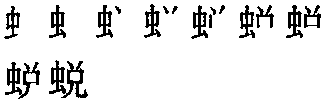 【提示】右上是丷,旧字形作八。 *蜕tuì13画 虫部 (1) 蝉、蛇等脱下的皮: 蝉~|蛇~|蚕~。 (2) 蝉、蛇等动物脱皮: ~皮|~化。 蜕tuì小篆形声字。从虫,脱省,兑(duì)亦声。指蛇、蝉等动物脱下来的皮。如:蝉蜕(中药)。转为动词,指蛇、蝉等动物脱皮。组词如:蜕化(转义为变质,腐化堕落。“退化”音同,义有区别)。 蜕★常◎常