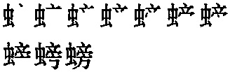 【提示】方,末笔是撇,不是横折钩。 *螃páng16画 虫部 【螃蟹】(—xiè)一种节肢动物,全身有甲,有一对螯(áo)、四对足,横着爬行。水陆两栖,种类很多。简称蟹。 螃páng中古形声字。从虫,从旁,旁亦声。用于螃蟹,等于说蟹。古代因蟹侧行,叫旁蟹。中古加虫旁。是节肢动物,全身有甲壳。五对脚,前面一对成钳状,横着走。 螃★常◎常pánɡ形声,从虫,旁声,用于“螃蟹”,一种节肢动物。 |