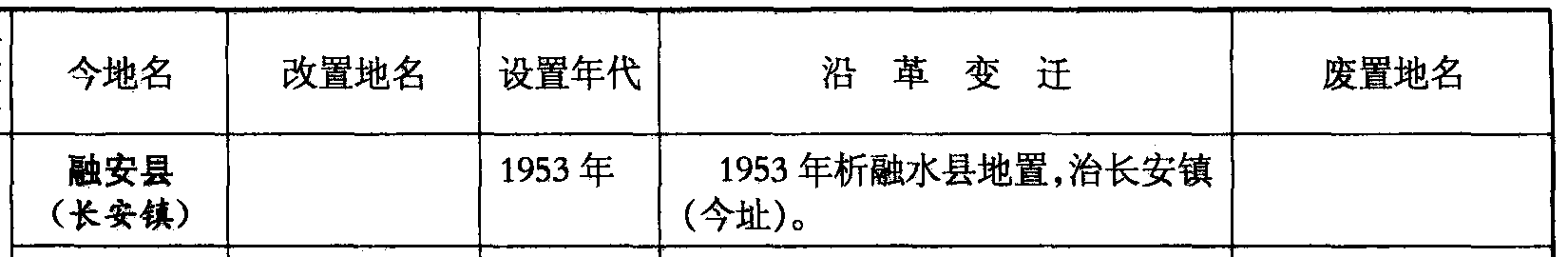 融安县(长安镇)1953年1953年析融水县地置,治长安镇(今址)。