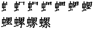【提示】右上的田,中间一横宋体与左右两边相接,楷体与左右两边相离。右下的小,第二笔宋体是撇,楷体是撇点。 *螺luó17画 虫部 (1) 一种软体动物,体外硬壳上有回旋纹,如田螺、海螺、螺蛳。 (2) 螺旋形的指纹。 螺luó中古形声字。从虫,累声。韵变如累骡瘰(luǒ)例。是一种软体动物,有硬壳,壳上有旋纹。如:田螺|海螺。组词如:螺蛳(-sī)(螺的通称)|螺旋|螺丝|法螺(军队或僧侣用海螺壳吹的一种乐器)。引申作手指纹义。如:螺纹。也作脶。从月(肉),呙(wō)声。声转而叠韵。 螺★常◎常luó形声,从虫,累声,本义为一种软体动物,体表有螺旋形的外壳,引申为根据螺旋原理制成的简单机械、形状像螺壳形的东西等。 |