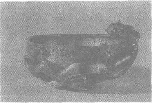 释义 | 古代名物 > 珍寳類 > 金銀部 > 銀器 > 蟠螭銀盞 蟠螭銀盞 pánchīyínzhǎn 元代銀質盞外壁附一蟠螭,故名。通高三·九厘米,口徑六·八厘米。圓形,圓唇,直口,圓腹,平底,下接圈足,外壁附一蟠螭,蟠螭首伸出盞口。造型新穎生動。盞内壁陰刻雲雷紋。口外沿陰刻“范婆橋西徐二郎花銀”九字。1966年4月,江蘇省金壇縣湖溪元窖藏出土。江蘇省鎮江市博物馆藏。 蟠螭银盏 蟠螭银盏元。通高3.9厘米,口径6.8厘米。1966年4月江苏省金坛县湖溪元窖藏出土。江苏省镇江博物馆藏。此银盏直口,圆腹,圈足。盏外壁附一蟠螭,螭首伸出盏口沿。盏内壁阴刻有云雷纹。口沿下阴刻有铭文“范婆桥西徐二郎花银”九字。该器做工精细,造型新颖而生动。 ☚ 金箍 “文王访贤”金饰件 ☛ |
