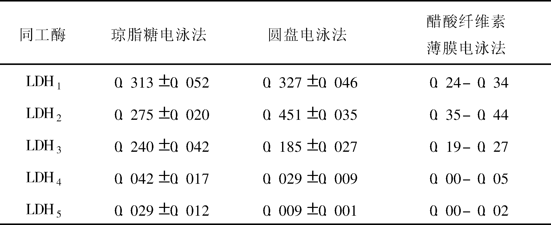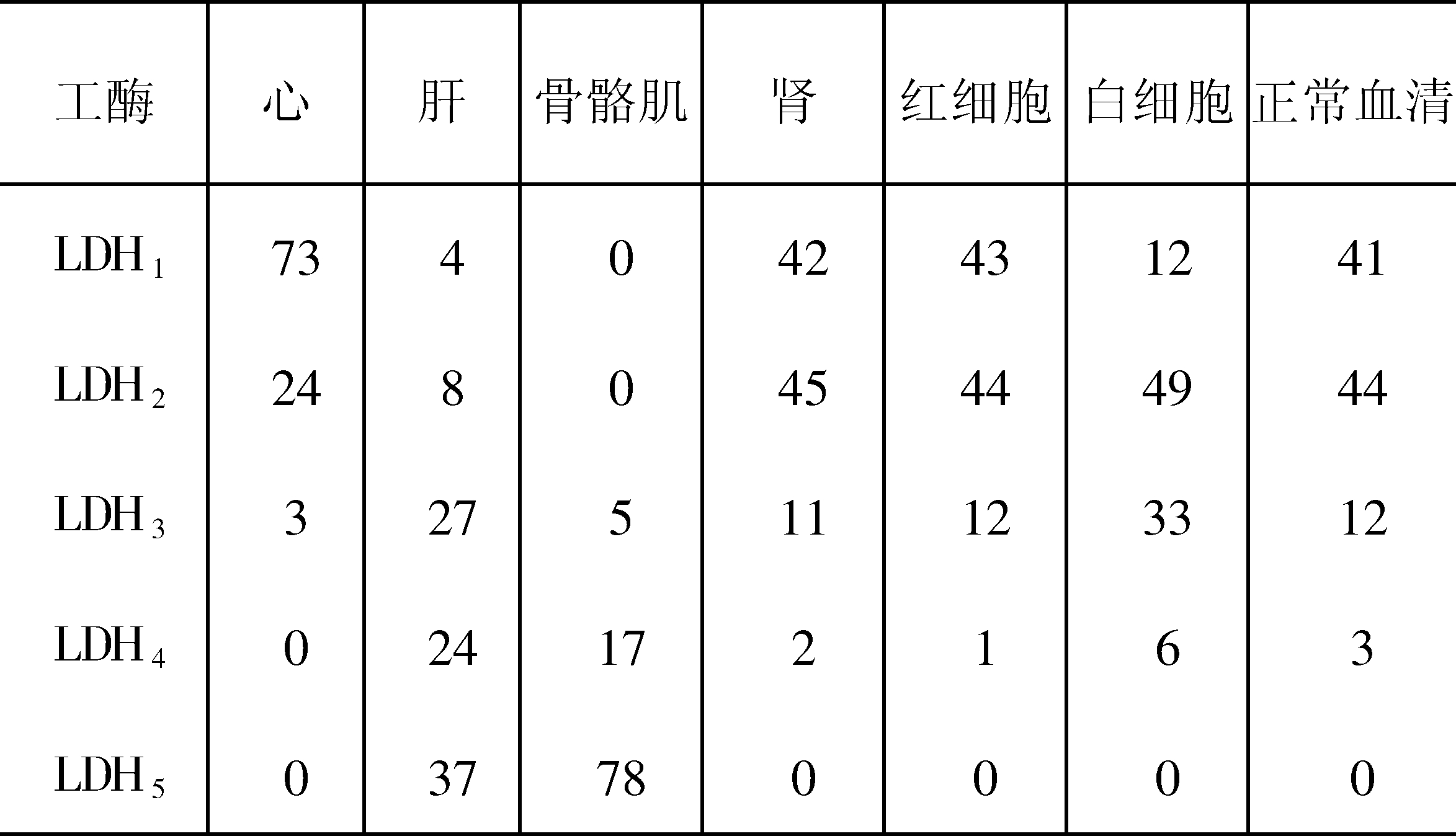 表2 LDH同工酶正常值