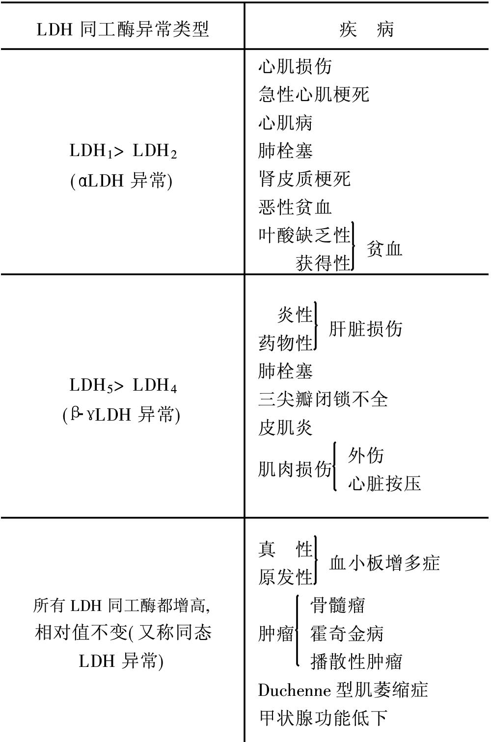 表3 LDH同工酶异常类型及相关疾病
