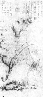 【作品赏析】: 湖石悬立,傍石生兰竹,特画一竹枝自中节折断,下临清流,水草丰滋。 笔墨雍容恬淡。自识:“县崖标独操,绝壁抱孤芳。墨林子项元汴写兰竹图并题。” 。【作者介绍】: 项元汴(1525-1590)字子京,号墨林居士,浙江嘉兴人。 是有名的古书画大收藏家、鉴赏家,其收藏之富之精,甲于海内。也是著名的吴派画家,或因其籍贯而被称为“嘉兴派”。善画山水、花卉,学元黄公望、倪瓒,尤醉心于倪,得其恬淡疏落之趣。绝意功名,不求仕进,万历时曾征他出来做官,也被他谢绝。 这幅《兰竹图》可说以其独特构思和笔情墨趣,通过传统的寓意形式,形象地表现了作者所标榜的追求志行高洁的生活、信守节操、不与俗同流和宁折毋弯、孤芳自赏的处世品格。应当说,这样的生活情趣和处世哲学,是相当普遍地反映了进入封建社会后期的一些文人士大夫的心理状态的。 。  明 项元汴 轴 纸本 藏台北故宫博物院 |