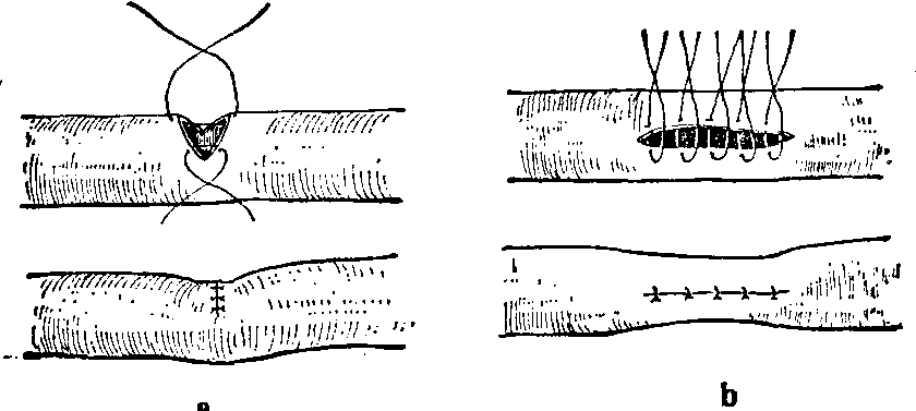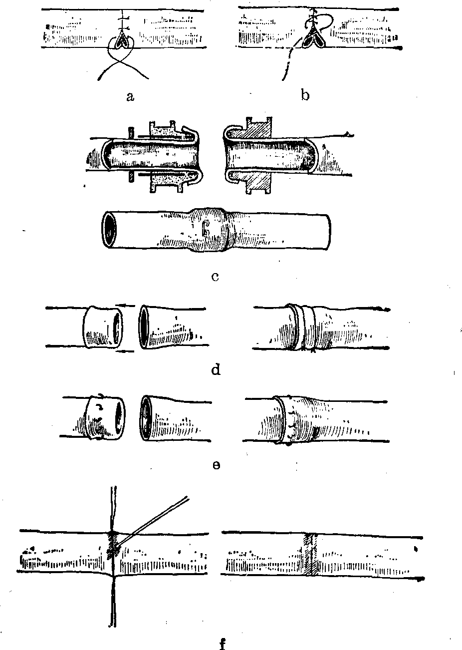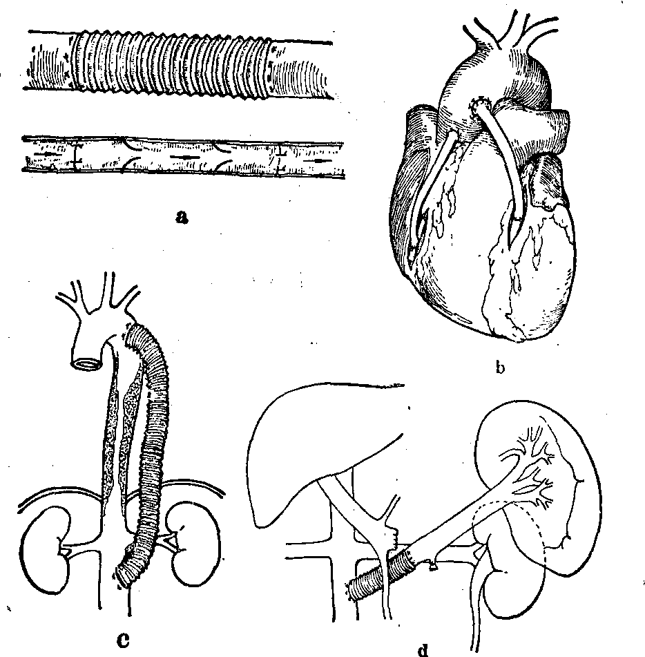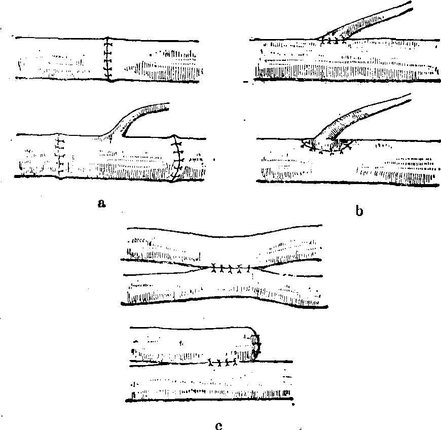 释义 | 血管手术 血管手术由于近年来断肢(指)再植和显微外科的进展,血管手术在骨科学领域内占了更重要的地位。血管手术的种类和应用范围有以下方面,并可参见“断肢再植”条目有关部分。 血管修补术(直接缝合) a.横缝 b. 纵缝 ![]() 血管修补术(补片缝合) a.补片为血管 b.补片为编织物 缝补方法有直接缝合和补片法两种,后者可以采用自体血管壁或人造编织物(例如涤伦)作为补片。直接缝补的优点是操作简便,应避免横缝张力过大而引起撕裂,或纵缝引起血管腔狭窄,为了克服此缺点,必要时可以采用横切纵缝或纵切横缝。血管壁缺损过多,张力过大者,宜采用补片缝合。中型血管宜采用血管壁缝补,主动脉壁多选用非生物性的编织物缝补,小血管的缝补容易造成狭窄和血栓,较少采用缝补法。 手术原则是要求缝补部位的血管壁全层完整,根据具体情况决定缝补方法,缝合贯穿全层,对中小型血管要求其内膜外翻,有良好的软组织床。手术合并症有因缝合撕裂,缝线松脱或补片坏死、脱落而引起出血,血管内血栓形成,血栓移动引起栓塞。 血管吻合术 血管吻合可在体内任何血管,大的如胸主动脉,小的如指血管都可以施行,目前能缝合直径0.4mm的血管,并获得通畅。常用于血管损伤、血管移植、肢体组织或器官移植、血液转流、血管阻塞病变和处理血栓手术、血管瘤等。 血管吻合形式有端端吻合,两条血管的对端相吻合,镶嵌吻合也属此类。端侧吻合,血管的一端与另一血管的侧壁相吻合,带盘吻合也属此类。侧侧吻合,两条血管的侧壁相吻合。 血管吻合型式 a.端端吻合 b.端侧吻合 c.侧侧吻合 血管吻合术的原则是(见“断肢再植”),对小血管采用间断缝合,大血管采用连续缝合,中型血管采用间断和连续相结合的方法,缝合时需在无张力条件下进行,缝合后血管行径径直而稍有张力为适当。 吻合的方法有 ❶缝合法。利用针线缝合,有间断缝合和连续缝合,适用于任何部位的大小血管是较常用和效果好的一种方法。 ❷机械钉扣法。通过特制的血管吻合器械使用金属钉扣联接血管,多用于中型血管,其优点是能迅速吻合血管,恢复其血流通道,其缺点是需要将两端血管壁充分翻转,牺牲一段血管。 ❸套接法。利用金属或塑料套管(或带勾套圈)套接血管的两端,多用于中型血管,其优点和上述机械钉扣法相同,但套管本身无弹性,不能随发育而伸展,故不适合儿童使用。 ❹粘合法。例如采用甲氰基丙烯酸酯类粘合剂,粘合血管两端,主要用于小血管端端粘合,粘合前需间断缝合2~3针作为固定,然后涂布粘合剂,存在的主要问题是粘合剂的毒性和刺激性能引起血管反应和粘合部分经不起动脉高压的冲击。 血管移植术 是利用血管或人造血管移植和修复血管的缺损,以恢复和改善其血液通道。 血管移植有生物性和非生物性两大类。生物性包括自体、同种异体和异种的血管。后两者因生物免疫性未完全解决,故疗效差。目前临床上只使用自体血管移植。非生物性是指高分子材料(例如涤伦)或丝、棉等人造血管。我国在六十年代应用丝织物代血管已用于临床,并获得成功。这类血管主要用于大动脉的移植 (直径4~5mm以上),微小血管的移植需要用口径相等的自体静脉,特殊情况下才可能采用自体动脉。 血管吻合术 a.间断缝合 b.连续缝合 c.机械钉扣法 d.套管法 e.套环法 f.粘合法 血管移植术 a.血管缺损修补 b.血管间搭桥 c.旁道联接d.血液转流 常用范围为血管缺损,例如外伤血管断裂和缺损。血管阻塞例如主动脉阻塞,转流减压如脾静脉与腔静脉间搭桥。 手术原则是移植修复直径4~5mm以上的血管采用人造血管,修复直径4~5mm以下的血管用自体血管,采用自体静脉移植要注意静脉瓣和血流方向一致,移植血管的行径尽可能径直,若为端侧吻合,成角最好在30°~60°间,并适合血流方向。血管联接方法参见前述“血管吻合术”。 ☚ 神经手术 指端缺损 ☛ |
