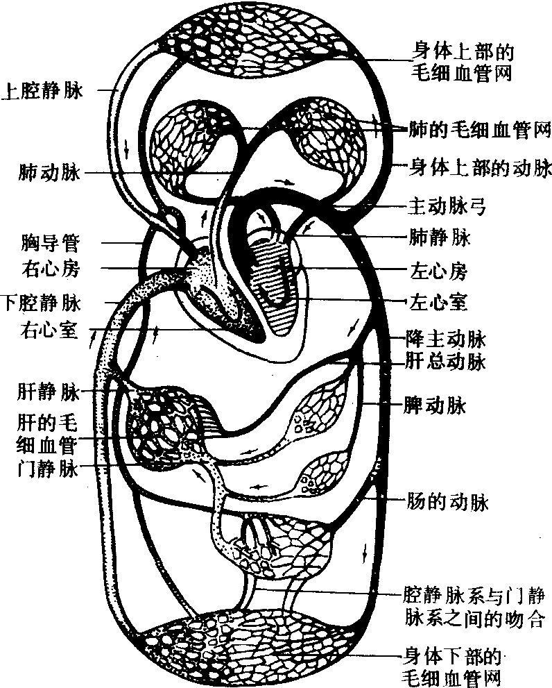 是循环系统的重要组成部分。其功能是输送血液、分配血量和进行物质交换。血管系统分为动脉、静脉和毛细血管。动脉是运输血液离开心脏的血管,静脉是输送血液返回心脏的血管,毛细血管是连于动脉和静脉之间的微细血管。血管系统是一系列复杂分支的管道。主动脉和肺动脉分别由左心室和右心室发出,反复分支为中动脉、小动脉、微动脉和毛细血管。动脉离开心脏愈运,分支愈多,管径愈细,但各级分支的横截面积的总和(管腔总容积)却逐渐增大。毛细血管的总横截面积最大,它在全身各组织、器官内有许多分支,穿插于细胞之间,互相吻合成毛细血管网。毛细血管汇合成管径越来越粗,分支越来越少的微静脉、小静脉、中静脉、大静脉而回至心房。动脉、毛细血管、静脉互相串联成一基本封闭的管道系统。因各类血管在循环系统中所处部位不同,故各有自己的结构和机能特点,在血液循环过程中发挥各自的特殊作用。大动脉属弹性血管,能承受强大的血压和维持连续均匀的血流。中动脉、小动脉和微动脉属肌性血管,可改变各器官的血量分配。毛细血管是血液与细胞进行物质交换的场所。静脉是血液贮存库。安静状态下,循环血量的60~70%贮存在静脉中。