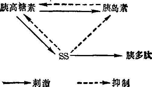 生长激素抑制激素 生长激素抑制激素(SS)的分子结构为14肽。它首先从下丘脑提出。后来发现其他脑组