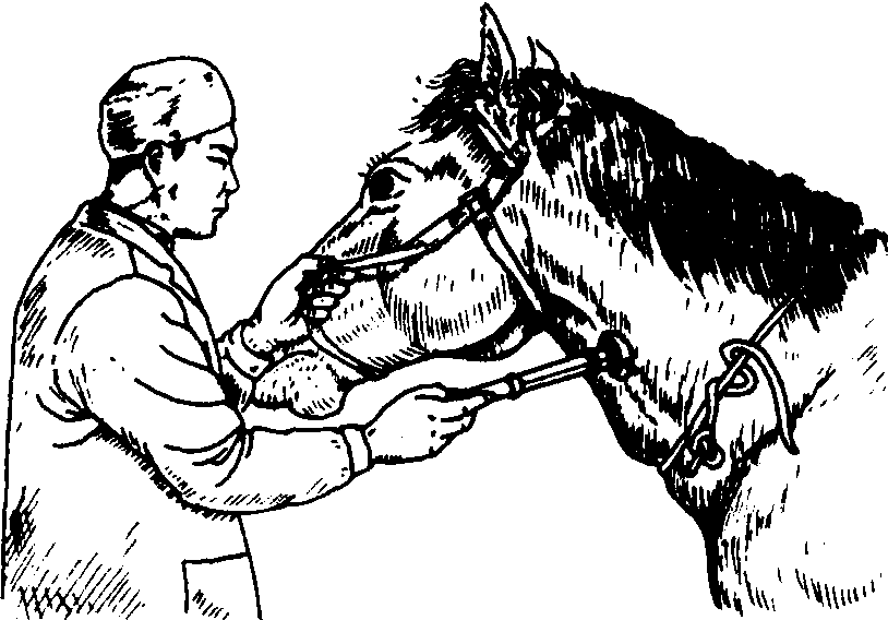 释义 | 血针疗法blood-pricking therapy使用宽针或三棱针等直接刺破血针穴位上的静脉管或静脉丛放出适量血液进行防治家畜疾病的方法。又称红针疗法。出《司牧安骥集》。血针穴位较多, 马最常用的有三堂(胸堂、玉堂、肾堂)和六脉(上六脉: 眼脉、鹘脉、胸堂、带脉、肾堂、尾本; 下六脉: 同筋、夜眼、缠腕、蹄头、曲池、膝脉)等穴。 图 1 宽针手持针刺血法 操作方法 首先按所刺穴位的特定要求把患畜保定妥当, 使用的针具有宽针或三棱针, 猪也可用痧刀或眉刀。宽针刺血法有: ❶手持针法。根据所刺穴位的深浅大小, 量确针尖长度, 快速一次刺破皮肤和血管,血液随即流出。缠腕、膝脉、曲池等穴常用此法(图1)。 ❷针锤持针法。选择适宜宽针, 妥善固定于针锤上, 使露出的针尖长度适宜。术者和患畜的体位姿势确立后,术者用手挥动针锤,准确快速刺破血管,血液随即流出。胸堂、蹄头、鹘脉穴常用此法(图2)。若无针锤可用手代替针锤持针(图3)。三棱针刺血法,量准针尖露出长度,迅速刺破血管,待血流达到出血量时,用酒精棉球稍加按压,解除保定,渐渐使血自止。通关、玉堂等穴常用此法(图4)。 图 2 针锤持针刺血法 泻血量 在血针疗法中,刺破血针穴位必须达到的血液流出量。每个血针穴位都有一个规定的泻血量范围。泻血量往往是影响血针疗法效果的关键。临证上需根据患畜体质强弱、病情和季节气候等灵活掌握。一般膘肥体壮者泻血量宜大,瘦弱体小者泻血量宜小。初病、实证、热证泻血量宜大,病久、寒证、虚证可不泻或少泻。在炎热夏季可多泻,严冬时节宜不泻或少泻。首次治疗时,一般放血量也比较大。患畜 ![]() 图3 手代针锤持针法 适应症 血针疗法具有开窍、泻热、活血、消肿止痛等作用。适用于各种热证、实证和血瘀气滞疼痛性疾患,如高烧、中毒、肺热咳嗽、急性瘸拐、日射病、热射病、眼病、遍身黄、肠黄、消化不良、蹄叶炎、痉挛疝等。春季给马放大血(鹘脉)或牛开针洗口,不仅可减少夏季疾病的发生,而且有一定增膘促进生长的作用。 注意事项 ❶三棱针针尖细小,容易折断,不宜用来针刺蹄头、曲池等骨间穴位。 ❷针具和穴位必须严格消毒。 ❸宽针的针刃必须与血管平行,防止横断血管。 ❹一般达到出血量后,让患畜肢体适当活动,或轻轻按压穴位即可止血。若出血不止,可多加压迫。必要时,用止血钳、止血药或烧烙法止血。 ❺若再需泻血时,最好避开前次针孔,以免扩大针孔或刺断血管。 ❻针后严防水浸、雨淋,保持术部清洁,以免发生感染。 图4 三棱针刺玉堂穴法 血针疗法pricking blood therapy用宽针或三棱针急刺病畜穴位,使其出血,以达治疗疾病目的的传统疗法。出血量视病情而定,有几毫升至数百毫升。适于治疗眼病、胃热、冷痛、中暑、脑黄、五攒痛、瘸拐症、闪伤腰胯痛等。 |