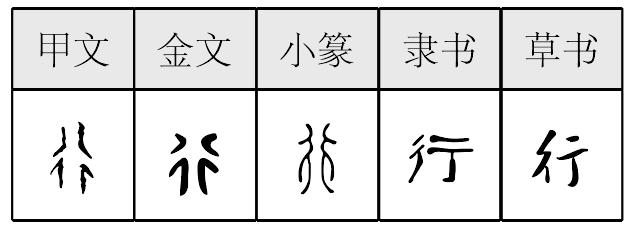 行(xíng)“ ,人之步趋也。从彳,从亍。凡行之属皆从行。”(户庚切) 甲骨文作 ,象十字路口之形,罗振玉《增订殷虚书契考释》中有详细考证和说解。“行”本义是道路,“行走”为引申义。卜辞中有:“贞:勿行出?贞:行出?”(《乙》7771)贞问是否由大道出行。作“行走”义讲的,如:“乙丑,王不行自雀?”(《乙》947)“行东至河”(《京》3104)等。[1]春秋金文或作 ,已发生形变。 《尔雅·释宫》:“行,道也。”“行”字构意为道路。小篆字形发生讹变,故许慎的解释不确。先秦文献用例如《诗·豳风·七月》有:“女执懿筐,遵彼微行,爰求柔桑。”毛传:“微行,墙下径也。”孔颖达疏:“行,训为道也。步道谓之径,微行为墙下径。”又如《诗·小雅·鹿鸣》:“人之好我,示我周行。”毛传:“行,道也。”许慎之释为“行”之引申义。如《论语·学而》:“三人行,必有我师焉。”“行”是兼类词,读音也因词类的不同而有不同。 行部共有属字十一个,它们本义大都与道路有关。如“術”的本义是邑中的道路,“街”是四通的道路,“衢”是四通八达的道路,“衝”是纵横相交的大道等。从《说文》到《康熙字典》、《辞源》都立有“行”部,但后来的《新华字典》、《汉语大字典》、《汉语大词典》均予取消,并入“彳”部。 行(6画) ❶háng ❷xíng