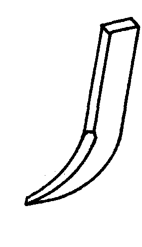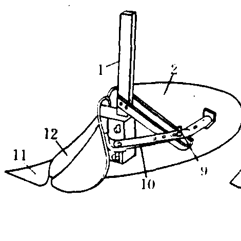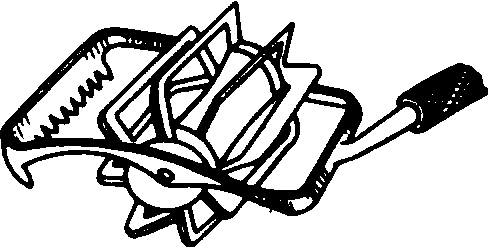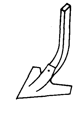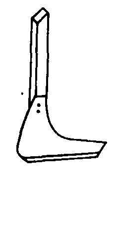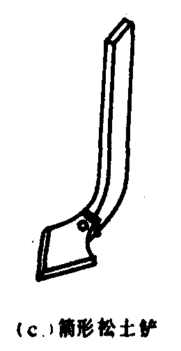 图2 除草铲 松土铲 有三种形式,如图3。用于行间松土。凿形松土铲松土深度较大。箭形松土铲耕后土壤松碎,沟底较平整。尖形松土铲的作用与凿形铲相似,但铲尖可调换并可调头使用。