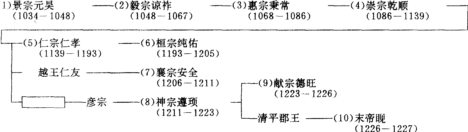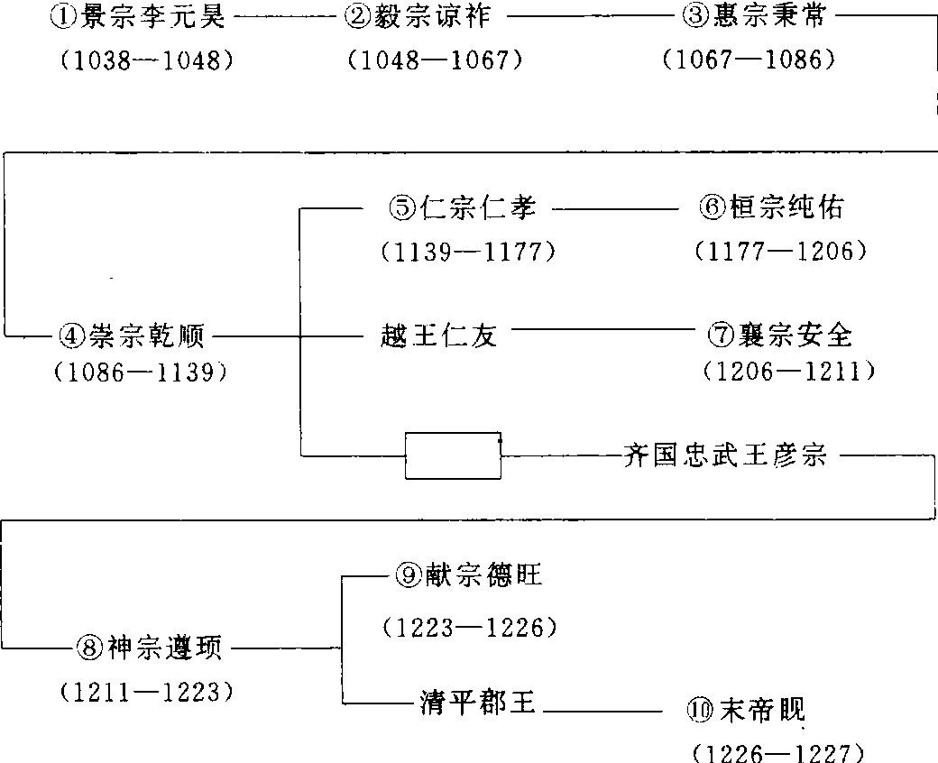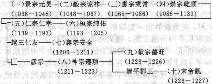 ☚ 金 元 ☛ 西夏 西夏Xixia11世纪初党项族建立的封建皇朝。党项是古代羌族一支,很早便生活在西北地区。唐代受节制,唐末叶出兵支持唐,首领拓跋思恭受赐姓李,占有银、绥、甘、夏、静、宥等5州之地。宋初,党项族在与吐蕃、回鹘的斗争中强大起来,赵宋赐党项首领姓赵。赵元昊任党项首领后,势力伸展至河西走廊一带。景祐五年(1038)建大夏,元昊称帝,建都兴庆(今宁夏回族自治区银川市)。又称上白国,北宋因其地处西部,称西夏。西夏建立后,设立了自己的各项制度。官制有两套系统,一套系统为党项官制,主要负责党项及汉人以外诸族事务,有宁令、漠宁令、丁卢、丁弩、素赍、祖儒、吕则、枢铭等官职。另一套为汉官制,仿自北宋,有省与枢密院设置,又有官计司、农田司、群牧司、磨勘司、飞龙苑、文思院等机构。党项官除由贵族担任外,也自蕃学中选拔人才担任职务。汉官制中诸官则由蕃汉分别担任,汉士人仍进行科考。仁宗时,汉制渐成为主要政治制度。西夏军队有擒生军、侍卫军和地方驻军。擒生军约10万,是夏军精锐,设有炮手,称泼喜迭,主要负责在战争中夺取生口。侍卫军由选拔的豪族子弟善骑射者组成,约5000人,号“御园内六班直”,分番宿卫。它又是一支质子军。部落首长统率各部兵为地方军队,称“溜”。全国有左、右厢十二监军司,分别委任豪族统之,监军司仿宋制立军名,设都都统、副统军、监军使等职,均由部落中贵族担任。有事政府以银牌招部落首领听节制。党项人以帐为单位抽兵,大致每二丁取正、负担各一人,组成抄。在礼仪上,西夏不再采用宋制,皇帝采择回鹘汗与吐蕃赞普服制,平民以青绿色衣分别贵贱等级。但文官基本仍用宋制。又仿宋制制朝仪、礼乐等。毅宗时,下令改用汉礼,不再使用蕃礼。西夏文字制成后,建党项学,即蕃学,选择党项与汉官僚子弟入学。夏建立初与宋、辽进行了激烈斗争。同宋的大战争有三次。夏宣布建立,宋朝野务以剿灭为事,下令削去元昊所受官爵,募人擒杀元昊,派兵将备战。初战宋将狄青败夏军,夏损失帐2000余。康定元年(1040),元昊率军于三川口大败宋军,次年元昊进攻渭州,在好水川再次打败宋军。天授礼法延祚五年(1042),元昊攻镇戎军,宋将葛怀敏阵亡,宋军又败于定川寨。宋连续失败,接受元昊建国时提出条件,册元昊为国主,每年赐夏银5万两,绢13万匹,茶2万斤(后银增加2万两,绢增加2万匹,茶增加1万斤)。此后,夏宋之间交往较多,但战争亦时有发生,夏多次主动进攻,以夺取土地、人口。夏建元之初与辽亦有战争。夏辽以大河相隔,原处于辽统治下的党项族, 在夏建国初多叛辽附夏。天授礼法延祚七年 (1044), 辽兴宗率骑兵10万攻夏。夏军退拒贺兰山, 谢罪, 辽将不允, 元昊率军突围反攻, 辽军大败。辽与夏和议。西夏经与宋辽的战争, 确立了地位, 形成与北宋、辽鼎立的局面, 但多依辽抗宋。后又与金订约,乘金攻宋的时机,夺占宋地,与南宋、金成鼎立之势。西夏也与吐蕃国相邻, 毅宗曾多次出兵攻入吐蕃边地, 拓展土地。蕃部在哆讹等领导下, 曾于大庆四年(1143)举行起义,较大的部队约万人,较小者也有五六千人,夏仁宗残酷地镇压了这次起义。乾祐元年(1170),权臣任得敬迫仁宗分夏之半为他建立楚国, 并请金给予封号。金朝未允, 在金支持下仁宗以计杀任得敬,宋联合任得敬夹击金的阴谋也破产。史称任得敬分国。夏自建立起, 皇族与后族的斗争就较明显, 成为左右夏政治的重要内容。蒙古兴起后始侵入夏, 夏初联金以抗蒙, 应天四年 (1209) 蒙军围攻夏都中兴府(今宁夏银川),金拒不支援,夏改变策略,附蒙攻金, 配合蒙古大军作战。又与宋联合。但由于蒙古的压榨, 夏国上下难以忍受, 又因蒙古汗国决意灭夏, 夏又改变策略联金抗蒙。乾定四年 (1226) 成吉思汗亲征夏, 夏军连败, 次年夏献宗投降, 西夏灭亡。畜牧是西夏的主要生产部门,畜牧地区主要在银、夏、盐等州及鄂尔多斯高原、阿拉善、额济纳一带,河西走廊的凉州也为畜牧业中心, 有 “畜牧甲天下”之称(《金史》卷134《西夏》)。农业为另一主要经济部门,最初党项野利部人经营农业,后国土扩展,凉、甘、肃及河西走廊的农业区归入夏,农耕比重渐大。汉、蕃部、吐蕃人中的农业人口成为夏农业生产的重要力量,夏的农业水利事业很发达。手工业以皮毛制造业最突出。金银饰、铜铁业、瓷器、竹雕等行业也有一定水平。文化事业, 儒学渐深入, 有许多用西夏文译的儒家著述。佛教文化亦较深入,有许多西夏文译的佛经,建筑了许多寺院, 佛教礼俗深入社会生活, 宫廷也得到很大影响。夏文化中有特色的主要是诗歌创作。夏疆域极盛时包括今宁夏、陕北、甘肃西北、青海东北、内蒙西南及新疆部分地区。共传10帝, 190年。 西夏世系表 ☚ 辽的五京与五京道 西夏与北宋的和战 ☛ 西夏 西夏朝代名。中国封建皇朝。景祐五年(1038),党项族首领李元昊称帝,建立大夏国,定都兴庆 (今宁夏回族自治区银川市)。又称上白国。北宋因其地处西部,称西夏。西夏国境东尽黄河,西界玉门,南接萧关,北控大漠,地方万余里,倚贺兰山以为固。西夏建立后,设立了自己的各项制度。官制有两套系统,一套系统为党项官制,主要负责党项及汉人以外诸族事务,有宁令、漠宁令、丁卢、丁弩、素赍、祖儒、吕则、枢铭等官职。另一套为汉官制、仿自北宋,有省与枢密