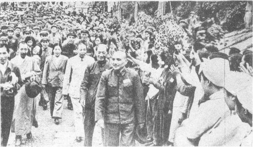 邓小平在重庆欢迎赴京谈判的西藏地方政府代表团(左一为阿沛·阿旺晋美)