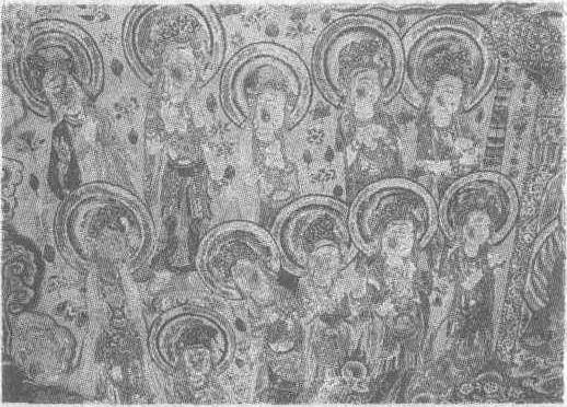 释义 | 见宝塔品(菩萨像)壁画 见宝塔品(菩萨像)壁画盛唐。纵80厘米,横108厘米。甘肃省敦煌县莫高窟第45窟西壁龛顶南侧壁画。这组菩萨,头戴卷云高冠,面型丰腴,弯眉细目,小口朱唇,体态十分健壮。所披天衣、锦裙装饰华丽,璎珞长垂,越发衬托其肌肤的细腻。菩萨神态安详,面带善意。线描纯熟,色彩艳丽。 ☚ 观音普门品(胡商遇盗)壁画 观音普门品图(海船遇难)壁画 ☛ |