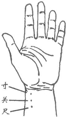 寸口脉分三部,桡骨茎突处为“关”,关之前(腕端)为“寸”,关之后(肘端)为“尺”。
