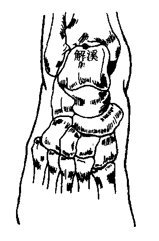 释义 | 古代名物 > 人體類 > 四肢部 > 經穴 > 解溪 解溪 jiěxī 足陽明胃經穴。因其在踝部兩筋之間凹陷處,故名。主治腹脹,下肢痿痹,足下垂。始見於秦漢典籍,沿稱至今。《靈樞經·本輸》:“解溪,上衝陽一寸半陷者中也,爲經。”《醫宗金鑒·刺灸心法要訣》:“解溪主治風水氣,面腹足腫喘咳頻,氣逆發噎頭風眩,悲泣癲狂悸與驚。” 解溪经穴名。代号ST41。出《灵枢·本输》。别名草鞋带。属足阳明胃经。经(火)穴。位于足背踝关节前横纹的中点,约与外踝尖相平,当趾长伸肌腱与𧿹长伸肌腱之间凹陷处。布有腓浅神经、腓深神经和胫前动、静脉。主治头痛,眩晕,目赤,腹胀,便秘,癫狂,头面浮肿,下肢痿痹,脚腕无力等。直刺0.3~0.5寸。艾条灸5~10分钟(图131)。 图131 解溪Chiehhsi系足阳明胃经上的一个针灸穴位。取穴:在足背踝关节横纹中点,当𧿹长伸肌腱与趾长伸肌腱之间取穴。针法:针尖向足跟直刺1~1.5寸。主要治疗头痛、眩晕、下肢痿痹等。 解溪经穴名。属足阳明胃经,经穴。位于足背与小腿交界处的横纹中,𧿹长伸肌腱与趾长伸肌腱之间。主治:头面浮肿,目赤,头痛,眩晕,腹胀,便秘,下肢痿痹,癫疾等。直刺0.4—0.6寸;可灸。 解溪 解溪足阳明胃经穴。取穴:在足背踝关节横纹中央(见图2-1-4)。主治:头痛、眩晕、癫狂、腹胀、便秘、下肢痿痹。刺灸法:直刺0.5~1寸。得气后针感沿本经上行至胫、股、腹部,少数上行至胃部,个别上行至咽、面部及前额。艾炷灸3~5壮;艾条灸5~15分钟。 ☚ 上巨虚 犊鼻 ☛ 解溪jiě xī经穴名。位于足背踝关节横纹中央凹陷处,属足阳明胃经。《诸病源候论养生导引 ·虚劳病诸候》:“去踹臂腰疼,解溪蹙气,日日渐损。” 解溪jiěxī经穴名。代号ST41。出《灵枢·本输》。属足阳明胃经。经穴。位于足背踝关节前横纹中点, 当 解溪 解溪S41Jiexi足阳明胃经穴。首见《灵枢·本输》。别名草鞋带穴。本经经穴。位于足踝关节面横纹中央,或于第二足趾直上, 当𧿹长伸肌腱与趾长伸肌腱之间取穴。正坐或仰卧取之。局部有胫前动、静脉;并有腓浅神经,深部为腓深神经。 解溪 ☚ 丰隆 冲阳 ☛ |