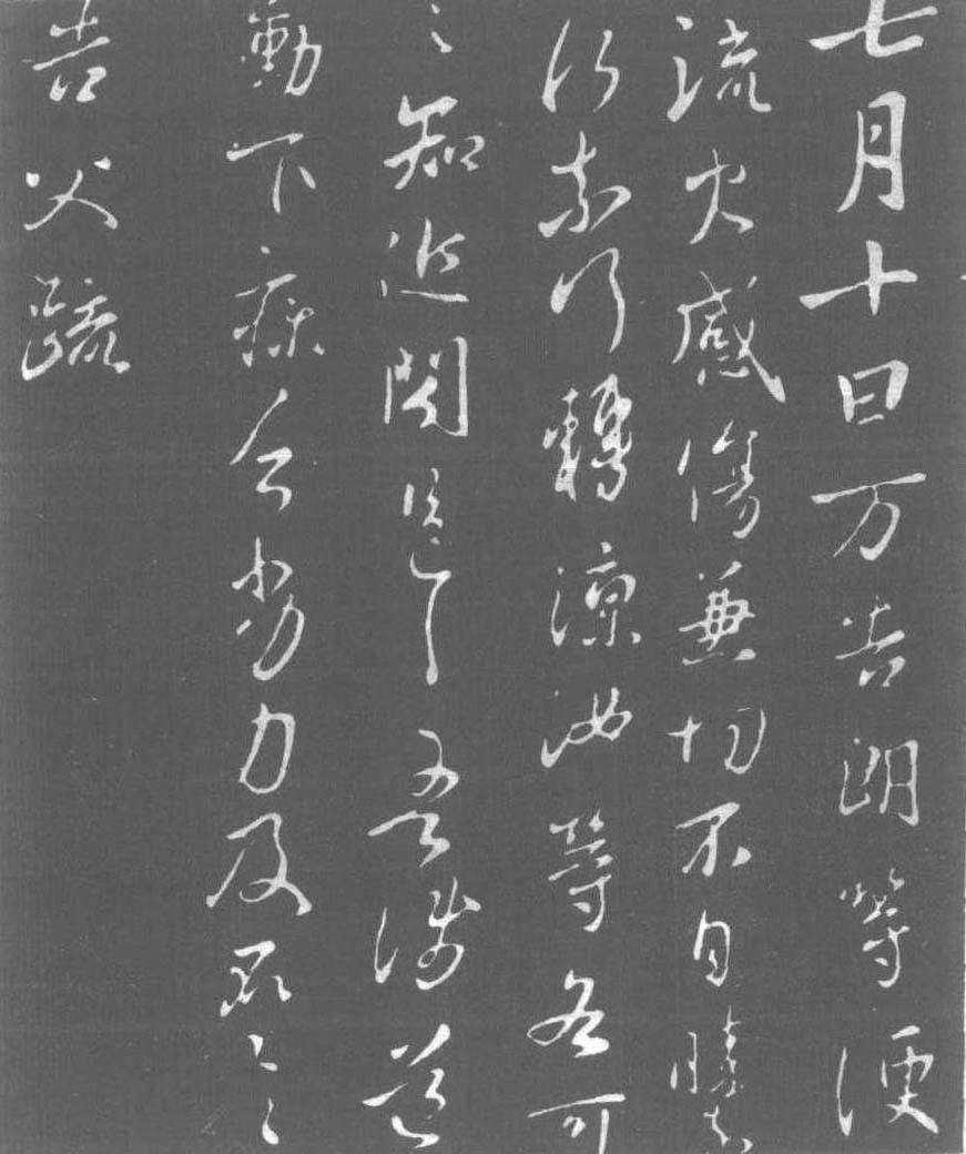 释义 | 謝萬(東晉)陳郡陽夏 (今河南太康)人。字萬石。安弟。才氣隽秀,早有時譽。工言論,善屬文。簡文帝 (司馬昱)召為撫軍從事中郎。萬著白綸巾、鶴氅裘,履版而前,與帝共談移日。再遷豫州刺史,受任北征,矜豪傲物,以嘯咏自高,未嘗撫衆,諸將恨之,兵潰被廢。爾後復以為散騎常侍。雅擅書法。宋 《宣和書譜》評云: “萬作字,自得家學,清潤遒勁,風度不凡,於行、草最長。”其傳稱作 <告朗帖>,為行書尺牘“七月十日萬告朗等便流火”云云六行,筆勢似顯脆弱,乃摹拓者所致,非書者之過也。 講堂帖 (後半) 謝萬·告朗帖 (局部) |