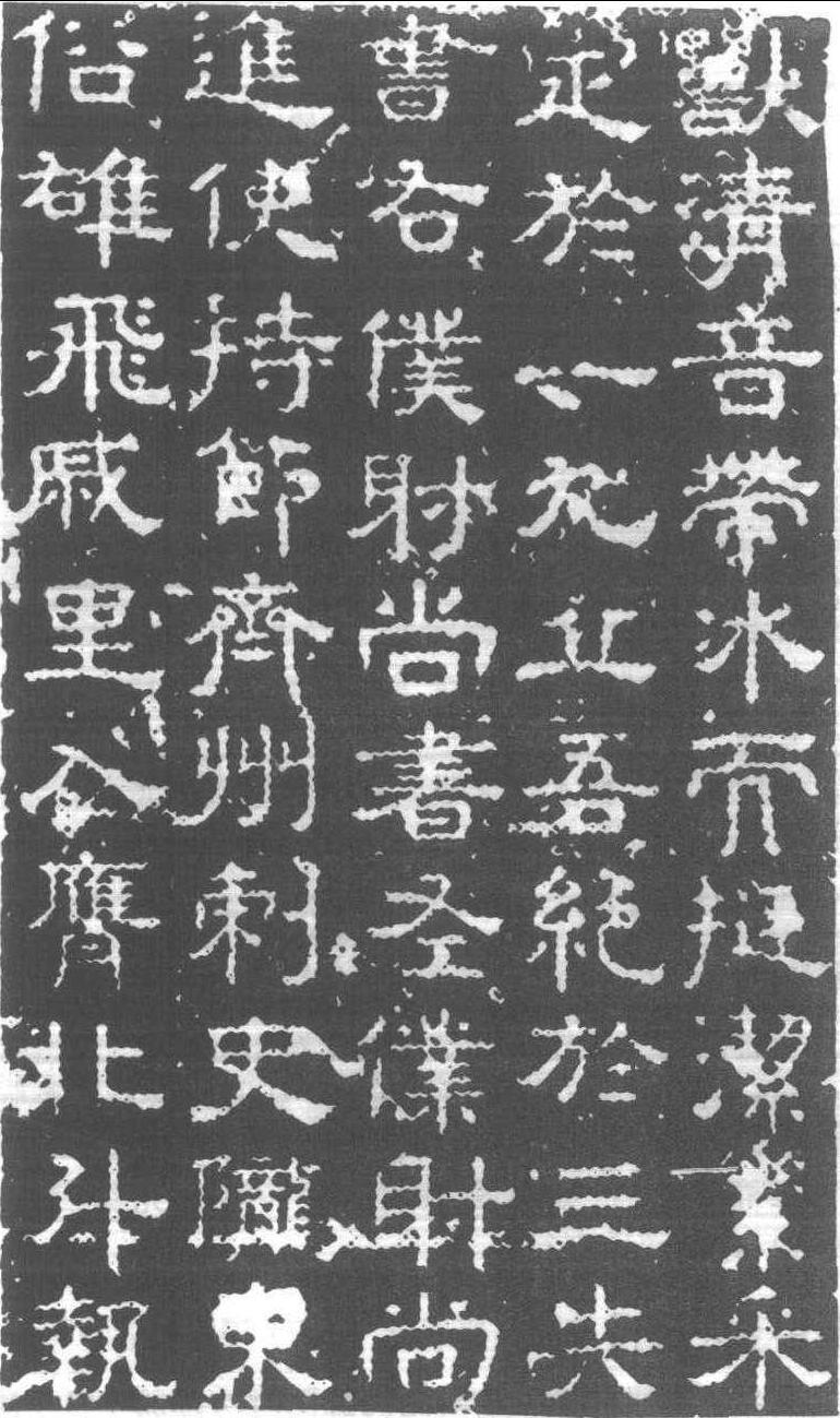 释义 | 譙敏碑亦稱〈小黄門譙君碑〉。東漢·中平四年(187)七月刻立。分書,凡三百二十字。額篆書 “漢故小黄門譙君之碑”九字。石舊在直隸棗强 (今河北棗强縣),惜久佚,原石拓本存否不詳。入清,黄小松(黄易)稱得此碑舊拓本(據翁方綱研究,屬重刻,并非原石),雙鈎入《小蓬萊閣金石文字》。是本後歸長白端方,石印於《黄小松藏漢碑五種》,易得見。傳世拓本惟黄易舊藏翦裱本,今在故宫博物院。有數種翻刻本,均失真。有正書局有石印本行世,字略縮小,非原刻者。此碑筆势细瘦,書風流麗秀逸,暢達遒勁,不失漢碑之姿,惟有筆法單調之感。 隴東王感孝頌 (局部) |