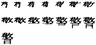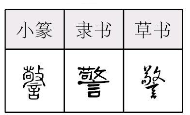 【提示】艹,3画,宋体是一横两竖,楷体第三笔是撇;旧字形4画,中间一横断为两笔。攵,4画,不要错写成3画的⼡。 *警jǐng19画 言部 (1) 告诫: ~告|~世|惩一~百。 (2) 戒备;防备: ~备|~戒|~卫。 (3) 危险紧急的情况或事情: ~钟|火~|报~。 (4) 感觉敏锐: 机~。 (5) 警察的简称: 乘~|民~。 警 ☚ 話 謐 ☛ 警jǐng古代形声字。从言,从敬,敬亦声。本告诫义。引申指需要戒备的危险事件或消息。如:告警|警报|火警。又指注意可能发生的危险。如:警戒|警备|警告。组词如:警察。也省称警。如:民警。又引申指感觉敏锐。如:警觉|警醒。 警★常◎常