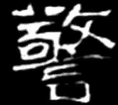 警 金文; 篆jǐng[言(意符)+敬(聲符)→警(《説文》:“警,戒也。從言從敬,敬亦聲。”警,注意可能發生的危險〈警衛、警世〉;需要戒備的事件或消息〈警號、警報、警鐘〉;感覺敏銳,見解獨到〈警句、警覺〉;國家維持社會秩序和治安的武裝力量〈警察、警士〉。)] 老舍《我這一輩子·十三》:“當了十年的差,我才升到頭等警,每月掙大洋九元。” 警 jǐng(19画)