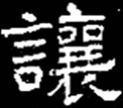 讓让, 篆ràng[言(意符)+襄(聲符)→讓(《説文》:“讓,相責讓。從言襄聲。”讓,不爭〈讓步、讓位、謙讓〉; 請〈讓茶〉。 許,使〈不讓他來〉。 任憑〈讓他鬧去〉。 被〈讓雨淋了〉。)] [西漢] 司馬遷 《史記·周本紀》:“入界,耕者皆讓畔〈田界〉,民俗皆讓長 〈老人〉。” 讓 ☚ 謫 譙 ☛ 00000792 |