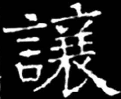 讓讓(让)Ràng现行较罕见姓氏。分布颇广: 今山东之鱼台,山西之太原、阳泉、运城,湖北之老河口,广东之澄海,云南之河口等地均有分布。《新编千家姓》收载; 《姓氏词典》 引 《姓苑》亦收,未详其源。 讓ràng❶退讓,謙讓。見“謙讓”。 ❷責讓。崔駰《達旨》:“人溺不拯,則非仁也。……德讓不修,則非忠也。” 讓“让”的繁体字。 上一条: 让 下一条: 攘 让讓ㄖㄤˋràng一1426①动批评;指责。⑴中原官话。江苏徐州〖 〗。你~他!江苏铜山。河南。◇ 《歧路灯》第十九回:「你隆吉哥来,我还要~他哩!」⑵晋语。山西文水。清光绪九年《文水县志》:「责人曰数说,又曰~。」⑶江淮官话。江苏泰州。陈啟彤《广新方言》卷二:「泰州谓诃责小儿曰~。」⑷西南官话。湖北随州。◈ 《说文》:「~,相责让。」《左传・僖公五年》:「公使~之。」《汉书・项籍传》:「二世使人~章邯。」②动低于;次于。中原官话。河南。《歧路灯》第四五回:「王中进城,见街市光景,大~祥符。」③动放长;增加。中原官话。陕西商县张家塬〖 〗。他把布量够了,再~出一点儿。④动冒出。冀鲁官话。山东淄博。《醒世姻缘传》第六六回:「(我)流水跑到那里看了一看,疮口像螃蟹似的往外~沫哩。」⑤动该去。闽语。福建建瓯〖 〗、松溪〖 〗、政和〖 〗、顺昌洋墩〖 〗、建阳〖 〗、崇安〖 〗、南平峡阳〖 〗。⑥代怎么样。客话。广东平远。吴绍权《平远山歌》:「火钳抓饭妹唔敢,冷水㓾猪~得来。」⑦介照,依照。冀鲁官话。山东济南〖 〗。~我说,这样不好。⑧形弱;差。晋语。河南安阳〖 〗、新乡〖 〗。他讲的不~‖他真不~。   讓让(2次) ❶退避。指射箭时垂手避让的礼节。揖辞~只《大》 ❷拒绝;避免。知死不可~《章·怀》 讓❶謂舉手平衡也。《儀禮·聘禮》:“賓入門皇,升堂讓,將授志趨。”鄭玄注: “讓,謂舉手平衡也。” ❷推賢尚善曰讓。《尚書古文·堯典》: “欽明文思,安安,允恭克讓。”鄭玄注: “推賢尚善曰讓。” (《通德堂經解》) 《尚書·堯典》:“允恭克讓。” 鄭玄注: “推賢尚善曰讓。”(《鄭氏佚書》) 讓rangD78C “让”的繁体。 讓ràngR003 “让”的繁体。 〖讓〗 粵 joeng6〔樣〕普 rànɡ ❶ 責備,責怪。許慎《說文解字》:「〜,相責〜。」魏禧《吾廬記》:「客有~余者曰。」 ❷ 辭讓,謙讓,有成語「孔融〜梨」。孟軻《孟子.公孫丑上》:「辭〜之心,禮之端也。」 ❸ 特指天子讓位,有詞語「禪【粵 sin6〔善〕普 shàn】〜」。莊周《莊子.逍遙遊》:「堯〜天下於許由。」(許由:傳說中的隱士。) ❹ 迴避,拒絕。司馬遷《史記.屈原賈生列傳》:「知死不可〜兮,願勿愛兮。」(愛:愛惜。)
