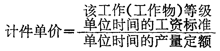 释义 | 计件单价完成某件产品或某项工作的单位工资额。它是支付计件工资的主要依据之一。在正常条件下,计件单价是根据与工作物等级相应的工资标准和劳动定额为基础计算出来的。其计算方法,一般是:某工作物等级的单位时间(日、时)的工资标准除以规定的单位时间(日、时)的产量定额,或者乘以规定的单位产品的工时定额。在采用累进计件工资制时,工人超额部份的计件单价是随着超额程度而递增。这种随超额程度而递增的计件单价称“累进计件单价”。在采用集体计件工资制时,其所用的单价称“集体计件单价”(或工组计件单价)。它是由计件单位定员内全体人员单位时间( 日、时)的工资标准之和除以规定的单位时间( 日、时)的产量定额,或者乘以规定的全体人员单位产品的工时定额来确定。在采用间接计件工资制时,其所用单价称为“间接计件单价”。它等于辅助工人的等级工资标准,除以辅助工人所服务的工段或计件工人单位时间内应生产的产量。在确定计件单价时,工资标准的单位时间和劳动定额的单位时间应该相一致,同时,应先确定正确的工作物等级和先进合理的劳动定额水平。 计件单价即工人完成一件产品或某一分项工程的计件工资额。它是支付计件工资的依据。计件单价是按工作物的技术等级(即工作的技术复杂程度)、劳动繁重程度和责任大小等因素确定的。计件单价的计算公式如下: 或 该工作物等级的单位时间的工资标准×单位产品的工时定额 集体计件: 计件单价Unit Price of Piecework工人完成一件产品或一项工作的工资额。它是计件工资的基础。计件单价的一般计算方法为:某一等级工作的日(小时)工资标准除以规定的日(小时)产量定额,或乘以规定的单位产品的工时定额。采用累进计件工资则工人超额部分的计件单价随超额程度而递增,称“累进计件单价”。实行集体计件工资时,其所用的单价称“集体计件单价”。它由全组工人的日(小时)工资标准总数,除以规定的全组产量定额,或乘以规定的全组产品的工时定额来确定。 计件单价 计件单价❶完成某种产品单位产量的工资标准,是支付计件工资的主要依据。是根据计件工人的标准工资(或工作物等级标准工资)加上较高的奖金水平和产量定额(或工时定额)计算出来的。其计算公式为: ☚ 计件工资 计件作业工资 ☛ 计件单价 计件单价完成某种产品 (或工作) 的单位产量的工资支付标准。其计算公式为: 或 ☚ 停工工资 计件奖励工资 ☛ |