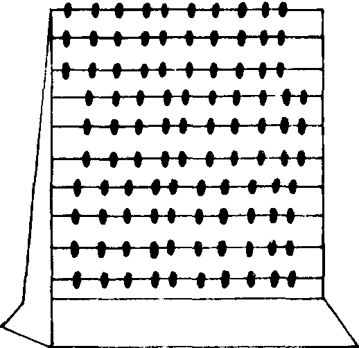 ❷摆珠计数器。四周没有框架,木珠可以随便取、放、操作,摆弄机会多,容易引起幼儿兴趣。这种计数器上的圆木棍有等长和不等长的两种。幼儿使用不等长木棍的计数器,首先得将木棍按长短序列插好,这是一种排列练习;其次,把木珠都装好后,会因木棍长短本来的差别而使珠子由少到多呈递增趋势,每一根木棍上的珠子总比前一根棍子上的木珠多一个,比后面棍子上的珠子少一个,这样便于幼儿理解数序和数与数之间的关系。另外,教师可以自制许多计数器,如收集的冰棒棍,经消毒处理后就可使用。另外,扣子、小木珠、小豆、玉米粒等物品收集起来,可给幼儿当成简单的计数器。