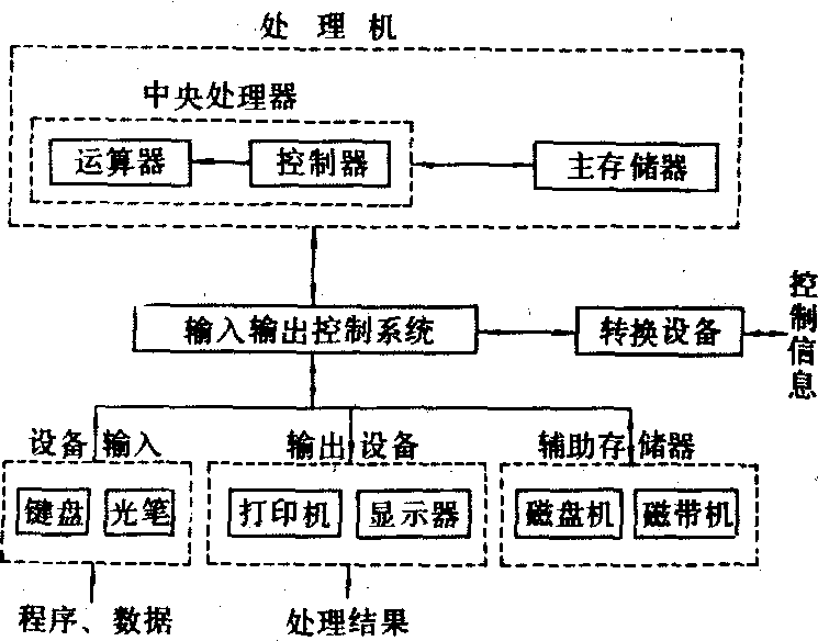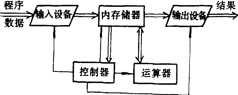 计算机硬件基本结构 目前计算机的种类很多, 其硬件体系结构也各有不同, 但对目 前大多数计算机来讲,硬件是由控制器、运算器、存储器、输入设备与输出设备五个主要部分组成,它们之间的关系如上图所示,图中的粗线(双线)表示数据传输通道,单线表示控制线。具有这种体系结构的计算机叫做冯·诺依曼计算机。 控制器是计算机的核心, 它控制计算机程序的指令执行次序,协调计算机各部分的工作,至于计算机硬件各组成部分的功能将在下面分别介绍。 对于计算机的使用者而言, 所见到的是计算机整机,使用者只能借助输入输出设备与计算机打交道,即从键盘或外存储器或其他输入设备输入用户程序与数据, 而在输出设备 (通常为显示器、打印机或外存储器)上获得计算机的运行结果,至于计算机的内部结构与工作过程, 对于使用者是不可见的。 ☚ 计算机发展趋势 中心处理器 ☛ 计算机硬件 计算机硬件信息技术的基础设备是计算机,信息业之所以有今天这样大发展的局面在很大程度上是与计算机的飞速发展密切相关的。 1991年,全世界投入使用的计算机数量约为1亿台,随着信息技术革命步伐不断加快,若干年内可能会达到10亿台。目前已经开发出的五代计算机系统分别以真空管、晶体管、硅片,超大规模集成电路和并行处理为基础。每次信息技术革命都使计算能力每5—7年增长约10倍,从而使过去30年间积累起来的计算能力比信息技术革命以前增长了近1万倍,而这种指数化的增长现在还看不到尽头。在今后一二十年内,计算能力很可能再一次翻上多番。美国苹果计算机公司董事长斯库利展望未来时就说过: “过去的所有努力使我们站到了起跑线上,而真正引人注目的变化却始于20世纪90年代。” 计算机的功能从根本上讲取决于它的信息存储与处理能力。目前的芯片容量每片含有几百万个元件,而几年之内该容量就可望达10亿个,电路板薄到只有几个原子的厚度。难怪有人认为: “芯片容量是驱动计算机工业发展的动力。” 现在许多旨在提高处理速度、增加存储容量的新技术正处在开发阶段。砷化镓芯片不久将进入商业化阶段,它能使速度比硅片提高5—6倍; 芯片上数以10亿计的元件将在真空中运行,使电子流处于无阻力的状态; 甚至在了解如何在有机物原子之间的化学键上存储信息即脱氯核糖核酸(DNA) 的拥有数据存储功能的 “生物芯片” 方面,也可望获得进展。这些功能更强的芯片正被用于并行处理结构中。 并行处理是信息技术领域最为重要的成就之一,它开辟了计算机使用的全新领域。1988年,日本电气公司宣布它将开发一种能通过阅读的声音识别输入信息,利用专家系统解决问题并能基于试验进行学习的4台微处理机并行系统; 在于研究进行之际,惠普公司将推出它的有4台处理器的计算机,不久还将推出16台处理器并行样机。利用上4台处理器的并行系统也处在研究开发之中,可以肯定十几年内并行处理将得到广泛应用。目前我们所用的光盘大约能存储1000兆比特的信息,就足以存下数百卷大百科全书的内容。现在约有13000个 “数字成像” 系统用在光盘上存储这类文件。如果目前的这种发展势头持续下去的话,那么在今后的十几年内用几张普通加密光盘就可以包容一个小型图书馆了。在我们眼前还有一个崭新的世界,在那里无穷无尽信息通过蜂巢技术很快就能使人们不受电话插转之累,实现随时随地与使话人联系。光缆将给通信频道负荷太重的蜂巢电话提供另一种选择。 光通信系统正处于开发阶段,预计几年后将进入市场。美国电话电报公司贝尔实验室副主任约翰·梅奥认为: “正如微电子学在过去十多年间推动着电信业的发展一样,光子学将激发90年代的电信革命。” 这些形式各异的信息技术系统正在与某些全球系统相统一。像综合业务数字网络 (ISDN) 这类开放系统标准很快就使任一种硬件和软件结合,并能与把数据、声音、影像、文本和其他所有形式的信息组合成完美整体的多媒体应用手段相衔接。据此,利用信息技术将不再是一个人在桌前忙来忙去,而它将进人我们的日常生活,帮助我们处理各种日常事务。考虑到上述种种技术的发展。一些研究人员认为信息技术的终点是光计算机——以光速运行而且有史无前例计算功能的计算机——就不足为奇了。过去十多年来,人们已开始从事光子形态和光计算机基本元件的研究开发,将来它终将成为 “下一代的计算机技术”。 ☚ 信息资源 计算机软件 ☛ 计算机硬件 计算机硬件信息技术的基础设备是计算机,信息业之所以有今天这样大发展的局面在很大程度上是与计算机的飞速发展密切相关的。 1991年,全世界投入使用的计算机数量约为1亿台,随着信息技术革命步伐不断加快,若干年内可能会达到10亿台。目前已经开发出的五代计算机系统分别以真空管、晶体管、硅片、超大规模集成电路和并行处理为基础。每次信息技术革命都使计算能力每5—7年增长约10倍,从而使过去30年间积累起来的计算能力比信息技术革命以前增长了近1万倍,而这种指数化的增长现在还看不到尽头。在今后一二十年内,计算能力很可能再一次翻上多番。美国苹果计算机公司董事长斯库利展望未来时就说过: “过去的所有努力使我们站到了起跑线上,而真正引人注目的变化却始于20世纪90年代。” 计算机的功能