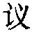 另见:议论 谈论 政治 政务 ☚ 言论 各种言论 ☛ 议議yì宜寄切,去至。 ❶议论;非议。《论语·季氏》:“天下有道,则庶人不~。” ❷商议,谋虑。《书·周官》:“~事以制,政乃不迷。” ❸意见;言论。《韩非子·人主》:“能退人臣之~,而背左右之讼。” ❹文体的一种。《文心雕龙·议对》:“~惟畴政,名实相课。” 议古代文体之一种。用以论事说理或陈述意见。唐代作为进士科考试内容之一,列入“杂文”之内。参见“杂文”。 议yì❶意见,言论。如:建议,提议,动议。 ❷商议。如:议论,议决,议事。 议 议文体名。《说文解字》:“议,语也”。刘勰《文心雕龙·议对》:“周爰咨谋,是谓为议。议之言宜,审事宜也”。徐师曾《文体明辨》:“盖古国有大事,必集群臣而廷议之,交口往复,务尽其情,若罢盐铁、击匈奴之类是也。厥后下公卿议,乃始撰词书以简牍以进,而学士偶有所见,又复私议于家,或商今,或订古,由是议浸盛焉”。管仲称轩辕有明合之议,乃最早源流。至汉又立驳议。“其有疑事,公卿百官会议,若台阁有所正处,而独执异意者曰驳议”(蔡邕《独断》)。议之体,“采故实于前代,观通变于古今”。“文以辨诘为能,不以缛为巧。事以明核为美,不以深隐为奇”(《文心雕龙》)。驳之别体,有对策、射策;议之二体,有奏议、私议。 ☚ 原 辨 ☛ 议(議)yìⅠ (意见; 言论) opinion; view: 倡 ~ initiate; advocate; 提 ~ propose; move; 异 ~ disagreement; dissident view; dissenting opinion Ⅱ (商议) discuss; exchange views on; talk over: 自报公 ~ make the self-assessment and be put to the public for discussion; 我们对各种方案都 ~ 了 ~。 We exchanged views on each of the different proposals. ◆议案 proposal; motion; bill; recommendation; 议程 agenda; 议定 agreed; 议定书 protocol; 议付 negotia ̄ tion; 议和 negotiate peace; make peace; conduct [carry out] peace negotiations; 议会 [英] parliament; [美] congress; [德] Reichstag; [日] Diet; [法] legislative assembly; 议[国]会大厦 parliament house; 议会制 parliamentarism; parliamentary system; 议价 negotiate a price; negotiated price; negotiated buying price; 议决 resolve after deliberation; pass a resolution; 议论 comment; talk; discuss; speak at great length; 议论纷纷 There were many discussions (and much conflict of opinion).; discuss animatedly; give rise to much discussion; 议论文 argumentative writing; argumentation; 议事 discuss official business; 议题 subject under discussion; topic for discussion; 议席 seat in legislative assembly; 议员 member of a legislative assembly; assemblyman; parliamentarian; [英] Member of Parliament (MP); [美] Congress ̄ man or Congresswoman; [日] dietman; 议院 legislative assembly; parliament; congress; 议长 speaker (of a legislative body); president 议yì❶ 议论纷纷