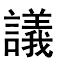 议 议yì商议,议论。《小雅·斯干》九章:“无非无仪,唯酒食是议,无父母诒罹。”郑《笺》:“妇人之事,唯议酒食耳。”朱熹《集传》:“仪,善。罹,忧也。有非,非妇人也。有善,非妇人也。盖女子以顺为正,无非足矣,有善则亦非其吉祥可愿之事也。唯酒食是议,而无遗父母之忧,则可矣。”《小雅·北山》六章:“或出入风议,或靡事不为。”朱熹《集传》:“出入风议,言亲信而从容也。” ☚ 训 讯 ☛ 议读音·i(ˋ),为i韵目,属i—er韵部。宜寄切,去,寘韵。 ❶议论。 ❷商议。 ❸意见;言论。 上一条: 義 下一条: 議 议〔yi〕nib:会~。huib nib. 议議yì❶商讨;议论 △ 商~|~定。 ❷意见;主张 △ 提~|力排众~。 ❸评论;批评 △ 评~∣非~。 议議❶意见;言论:拟~︱提~︱建~︱倡(chang)~︱决~︱协~︱成~︱抗~︱奏~︱附~︱刍(chu)~︱崇论宏~。 ❷讨论;商议:~论︱~事︱~程︱~题︱~案︱~会︱~席︱~院︱~决︱~定︱~和︱会~︱争~︱评~︱商~︱协~︱审~︱公~︱和~︱非~︱另~︱复~︱物~︱訾(zi)~︱诽(fei)~︱从长(chang)计~︱无可非~︱不可思~︱窃窃私~︱街谈巷~。 议yì❶ 意见,主张:异议︱提议︱抗议。 ❷ 谈论,商讨:审议︱商议︱大家议一议。 ❸ 评论,批评:非议︱公议。 ❹ 指议会:议席︱议长。 议yi议案 议程 议定 议购1 议和 议会 议价2 议决 议论议事 议题 议席 议员 议院 议长 议政 参议 倡议 成议 刍议3 动议 非议 附议 复议 公议 和议 会议 计议 建议 决议 抗议 拟议 面议 评议 清议4 商议 审议 提议 物议 协议 异议 争议 訾(zi)议5 议定书 议会制 议而不决 议论纷纷议论风生 议事日程 不可思议 部长会议6 从长计议 电话会议7街谈巷议 力排众议 联席会议 圆桌会议8 政治协商会议 议(同)论 议yì商议:明日一早我给大爷去请安去,再~细话罢。(十六·335)我也这样想着,只是老爷才回家来,多少大事未回,那里~到这个上头。(七二·1766)