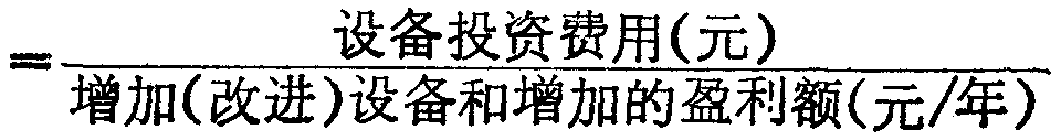 设备投资费用与增加或改进设备后增加的盈利额的比例。它是考核设备投资经济效果的主要指标,通常以年度表示。其计算公式为: