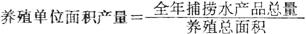释义 | 养殖单位面积产量 指全年捕捞总量除以养殖面积之商。 反映养殖面积实际生产能力的指标。一般用养殖面积每亩水产产品来表示。 其计算公式为: 在实际统计工作中,对藻类是按实际收获的养殖面积计算的,海水浮筏式养殖贝类和藻类,一般按每150米长度算作一亩。 对鱼类一般采取全部养殖面积计算。 |