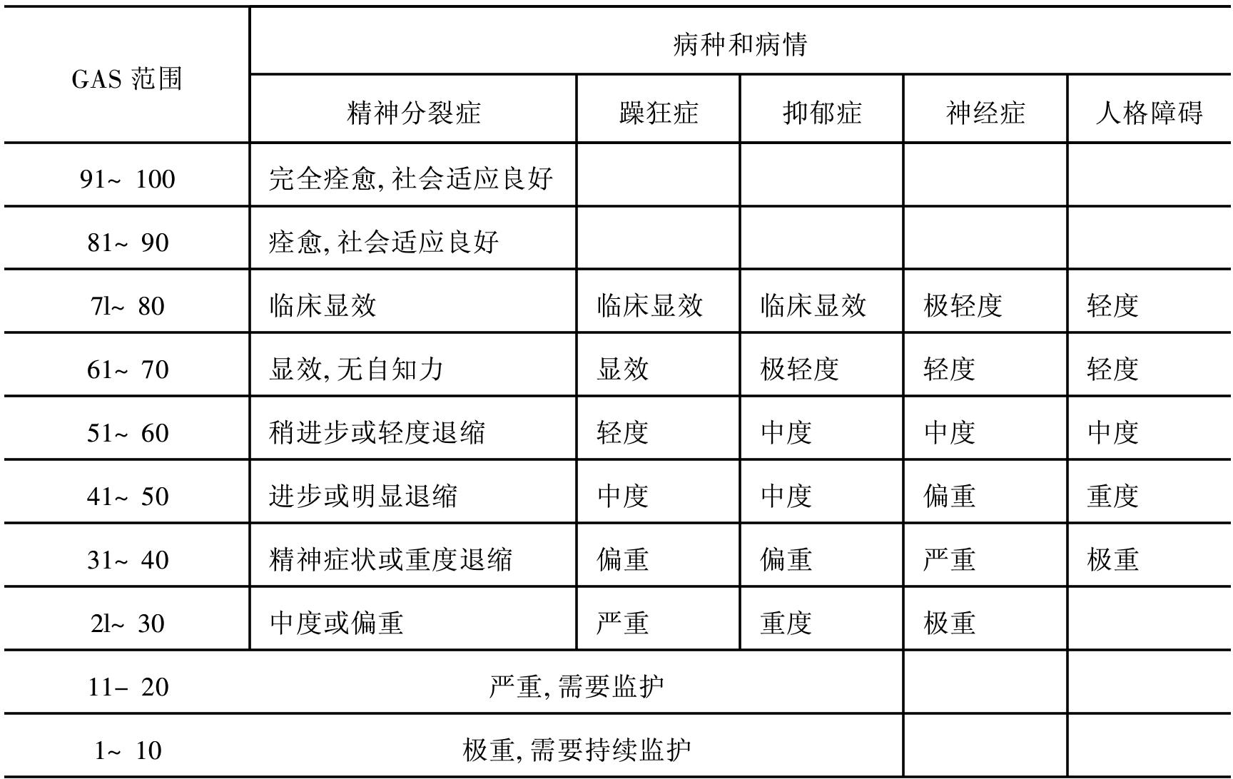 【统计指标】 GAS只有一项变量,即量表分,根据此分进行统计分析。 【应用评价】 1.GAS在经过训练后,可取得相当高的评分员一致性。在一次全国性量表讲习班上40名评分员,对8例患者作GAS评定,统计10分大级的符合率为88%,各评定员评分一致性相当高,Kappa=0.30~0.89,多数在0.70以上,说明GAS信度良好。GAS效度相当高,国外曾比较33例抑郁患者的病情严重程度(11级评分)与GAS评定,r=0.80。 2.GAS是一种十分简便的总体评定工具,在分析疗效时,往往同时应用GAS及有针对性的症状量表(如SCL-90,CES-D)等。前者反映病情总变化,后者反映靶症状群的改变,可作出较为全面的结论。 3.由于GAS是一种普遍接受的评定工具,因而在作其他量表的效度检验时,常以GAS作为平行效度检验的参照值,这是GAS的又一重要用途。我们对100例神经症性抑郁者的各量表结果间相关性进行评定,显示GAS和HAMD及CES-D结果呈高度负相关(r=-0.62和-0.40),提示GAS的平行效度良好。八、简易智力状态检查(MMSE) 简易智力状态检查(mini-mental state examination,MMSE) 由Folstein编制于1975年。它是最具影响的认知缺损筛选工具之一,被选入诊断用检查提纲(DIS),用于美国ECA的精神疾病流行病学调查;最近WHO推荐的复合国际诊断用检查(CIDl),亦将之组合在内。国内有李格和张明园两种中文修订版本。本文以张氏根据yu在芝加哥唐人街及蔡国钧在上海的预初试验结果修订的版本为主。 【项目及评定标准】 MMSE共19项。项目1~5是时间定向。6~10为地点定向。项目11分三小项,为语言即刻记忆。项目12为五小项,检查注意和计算。项目13分三小项,查短程记忆。项目14分二小项,为物体命名。项目15为语言复述。项目16为阅读理解。项目17为语言理解,分三小项。项目18,原版本为写一句句子,考虑到中国老人教育程度,改成说一句句子,检测言语表达。项目19为图形描画。共三十个小项,具体内容见记录单。回答或操作正确记“1”,错误记“5”,拒绝或说:“不会”,记“9”和“7”。 【结果分析和分界值】 MMSE的主要统计量为所有记“1”的项目(和小项)的总和,即回答/操作正确的项目/小项数,可以称为MMSE总分,范围为0~30。原作者以24分作为分界值:l~24分为有认知功能缺损。国内李氏提出以17分为分界值。我们对5055例社区老人的检测结果证明,MMSE总分和教育程度密切相关,提出按教育程度的分界值:文盲组(未受教育)17分,小学组(教育年限≤6年)20分,中学或以上组(教育年限>6年)24分。其结果较满意。 【评定注意事项】 要向被试者直接询问。如在社区中调查,注意不要让其他人干扰检查,老人容易灰心或放弃,应注意鼓励,一次检查需5~10分钟。多数项目的检查和评定方法在记录单上已写明,有几项需稍加说明。①项目11只允许主试讲一遍。不要求被试按物品次序回答。如第一遍有错误,先记分;然后,再告诉被试错在哪里,并再请他回忆。直至正确。但最多只能“学习”5次。②项目12为临床上常用的:“连续减7”测验,同时检查被试的注意力,故不要重复被试的答案。不得用笔算。③项目17的操作要求次序准确。 【应用评价】 MMSE信度良好,联合检查ICC为0.99,相隔48~72小时的重测法,ICC0.91。它和WAIS的平行效度也良好。有报告MMSE总分和痴呆患者CT的脑萎缩程度呈正相关。应用前述分界值检测痴呆,敏感性达92.5%,特异性为79.1%。它方法简便,对评定员的要求不高,只要经合适训练便可操作,适合用于社区和基层,其主要用途为检出需进一步诊断的对象。量表18-1 中文版简易智能状态检查(MMSE) 正确 错误 1.今年的年份?年 1 5 2,现在是什么季节? 季节 1 5 3.今天是几号? 日 1 5 4.今天是星期几? 星期 1 5 5.现在是几月份? 月 1 5 6.你能告诉我现在我们在哪里? 例如:现在我们在哪个省,市? 省(市) 1 5 7,你住在什么区(县)?区(县) 1 5 8.你住在什么街道? 街道(乡) 1 5 9.我们现在是第几楼?层楼 1 5 10.这儿是什么地方? 地址(名称) 1 5 11.现在我要说三样东西的名称,在我讲完之后,请你重复说一遍,请你好好记住这三样东西,因为等一下要再问你的(请仔细说清楚,每一样东西一秒钟)。 “皮球” “国旗” “树木” 请你把这三样东西说一遍(以第一次答案记分)。 对 错 拒绝回答 皮球 1 5 9 国旗 1 5 9 树木 1 5 9 12.现在请你从100减去7,然后从所得的数目再减去7,如此一直计算下去,把每一个答案都告诉我,直到我说“停”为止。 (若错了,但下一个答案都是对的,那么只记一次错误)。 对 错 说不会做 其他原因不做 93 15 7 9 86 1 5 7 9 79 1 5 7 9 72 1 5 7 9 65 1 5 7 9 停止! 13.现在请你告诉我,刚才我要你记住的三样东西是什么? 对 错 说不会做 拒绝 皮球 15 7 9 国旗 15 7 9 树木 15 7 9 14.(访问员:拿出你的手表) 请问这是什么? 对 错 拒绝 手表 1 5 9 (拿出你的铅笔) 请问这是什么? 对 错 拒绝 铅笔 1 5 9 15.现在我要说一句话,请清楚地重复一遍,这句话是:“四十四只石狮子”(只许说一遍,只有正确,咬字清楚的才记1分) 正确 不清楚 拒绝 四十四只石狮子 1 5 9 续表 16.(访问员:把写有“闭上您的眼睛”大字的卡片交给受访者)请照着这卡所写的去做(如果他闭上眼睛,记1分) 有 没有 说不会做 拒绝 文盲 闭眼睛 1 5 7 9 8 17.(访问员:说下面一段话,并给他一张空白纸,不要重复说明,也不要示范) 请用右手拿这张纸,再用双手把纸对折,然后将纸放在你的大腿上 对 错 说不会做 拒绝 用右手拿纸 15 7 9 把纸对折 15 7 9 放在大腿上 15 7 9 18.请你