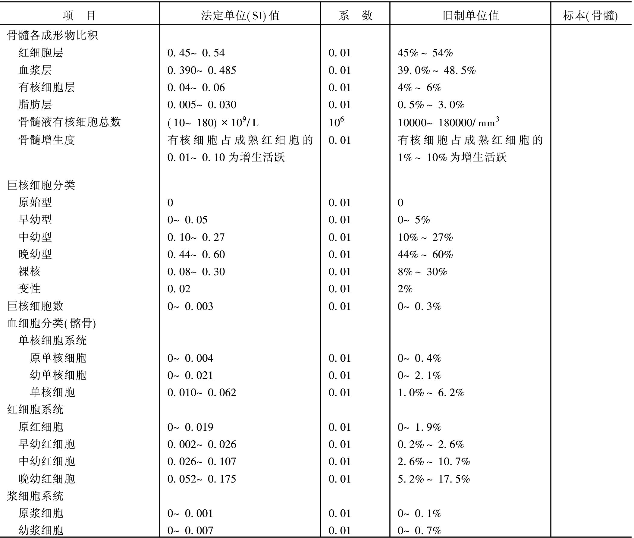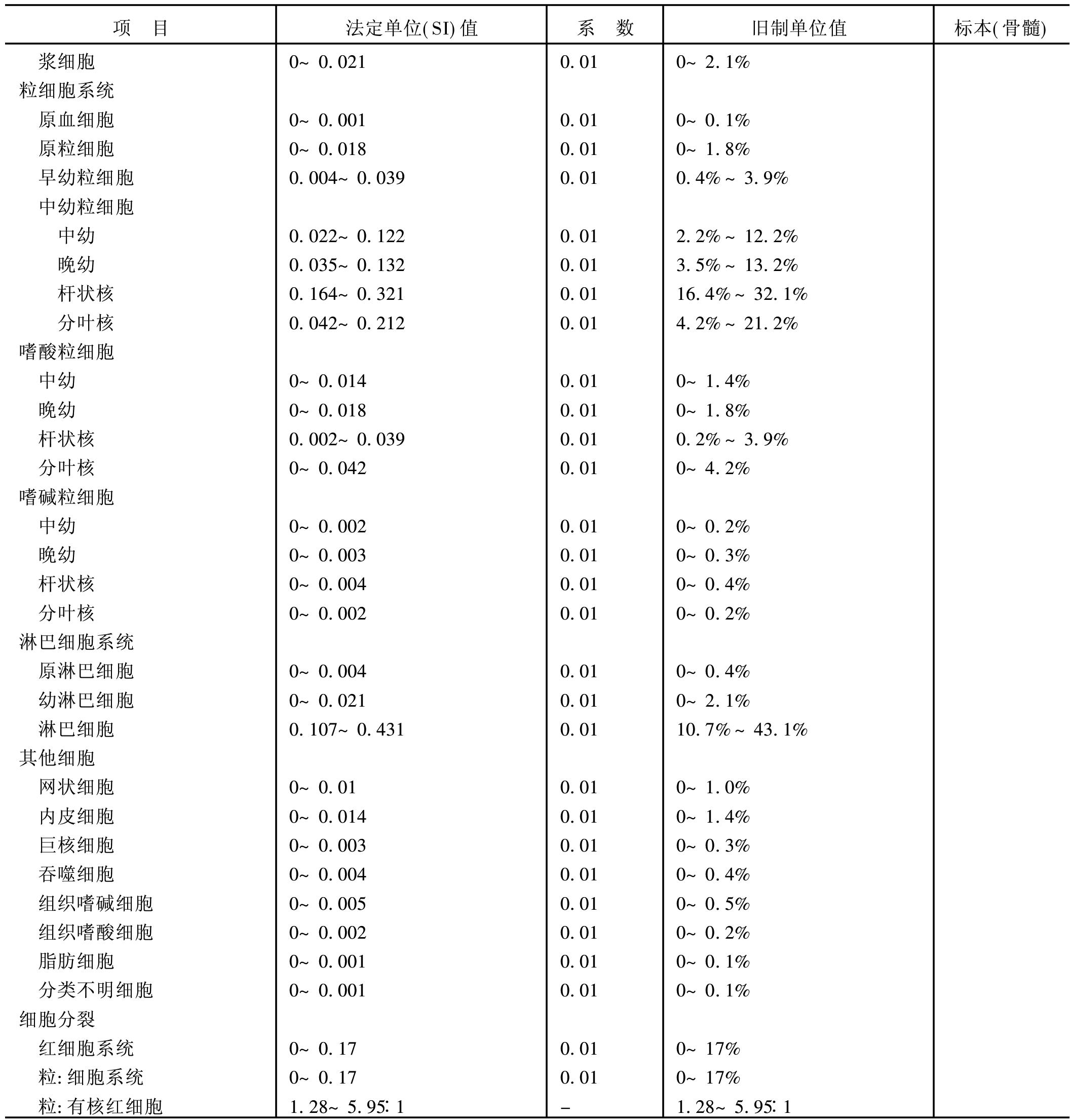 诊断学大辞典︱附录Ⅵ 临床检验参考值及单位换算系数 附录Ⅵ 临床检验参考值及单位换算系数 临床血液检验参考值