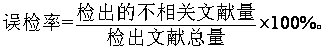 释义 | 误检率情报检索中,检出与某项情报需求无关的文献与所有被检出文献之比。即: 误检率 误检率情报检索中与查准率相对应的概念。指检出的不相关文献量与检出的文献总量之比。误检率可用下式表示: ☚ 语词索引 绝版 ☛ 误检率noise;noise ratio(/coefficient) |