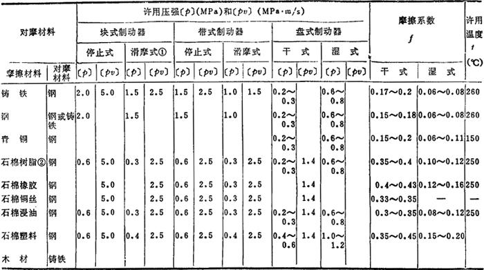 内张蹄式制动器由制动鼓、制动蹄、传力杠杆和驱动装置组成,多数是常开操纵式,其主要特点是结构紧凑,广泛用于各种车辆。这种制动器可分为单蹄式、双蹄式、多蹄式和软管多蹄式,其中应用最多的是双蹄式。双蹄式按制动蹄的属性分类见表4.8-14,典型的双蹄式制动器分别见图4.8-6~4.8-8。软管多蹄式制动器见图4.8-9,其软管1内可充入油或气,使摩擦块压向制动鼓而起制动作用。这种制动器的特点是结构紧凑,重量轻,制造简单,工作平稳,不需调整间隙,制动蹄与制动鼓的接触范围可高达360°,且对二者之间的同心度要求不高。其缺点是动作慢,气(油)耗量大。 表4.8-14 双蹄制动器的种类和特点 1—支承销; 2—制动缸; 3、5—制动蹄; 4—可调顶杆; 6—拉紧弹簧 1—软管; 2—摩擦块; 3—固定盘 内张蹄式制动器制动转矩的计算可参考表4.8-17。摩擦副计算用数据推荐值见表4.8-18。 表4.8-15 内张蹄式制动器制动转矩的计算  注: ❶ 此处为通称,垂直制动时可称下降式。 ❷ 即石棉树脂刹车带。 |