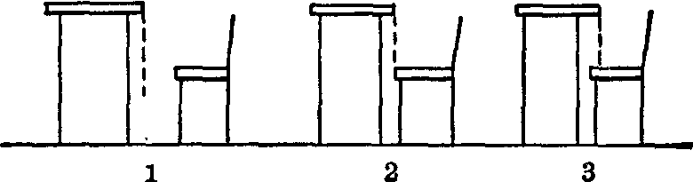 桌椅距离 即桌与椅之间的前后距离,共有两类: ❶椅座距离: 即桌近缘上下所引的垂线与椅座前缘之间的前后距离(图2),正距离和零距离都不能使人体保持良好的读写姿势,尤其是正距离,儿童看书写字时,躯干必须前弯,不能利用靠背,形成明显的不良姿势。故在儿童读写时,要求桌椅之间有2~4cm的负距离。 ❷椅背距离: 即桌近缘与椅靠背之间的水平距离。要求就座儿童的胸前应有3~5cm的自由距离,避免挤压胸部,而又能利用靠背。 图2 桌椅距离 课桌椅的型式 主要有两类,即连式和分离式,此外尚有固定式及升降式等。连式桌椅有固定的桌椅高差和桌椅距离,实际使用时,不同大小型号的课桌椅之间不会相混,便于管理。分离式课桌椅(双人或单人),儿童使用时能自由变换体位,少受拘束; 读写时可将椅子前移,使桌椅之间成负距离。但型号之间容易相混,须加强管理。升降式课桌椅是一种较理想的型式,可按学生身材大小及其增长情况及时调节课桌椅的高低。 预制各号课桌椅时,其数量应按学生身高组人数决定,但应考虑到学生正处于生长发育阶段,一年内可长高5~10cm,故应为其身高的增长留有余地。其次,相邻年级如在同一教室上课 (二部制),课桌椅的高度应以较高年级为准。每学年初,按身高给学生排好坐次,注意定期左右轮换,以免经常向一侧扭动身体。视力及听力不良的学生尽量排在前方; 有风湿病或易患感冒的儿童不要排在靠墙较冷处。教师要经常纠正学生的不良姿势。 对课桌椅现状进行卫生调查时,测量每名学生的身高及所坐课桌椅高差可计算出课桌椅合格率。 调整课桌椅时既要注意使现有课桌椅最大限度地适合学生身高,又要使现有课桌椅尽量利用。对少数无法调整的课桌椅则可在一定条件下迁就使用,如坐用大1号的课桌椅,而用褥垫、脚踏板等来调整桌椅高差或椅高。 ☚ 教具卫生 学校卫生教育 ☛ |
