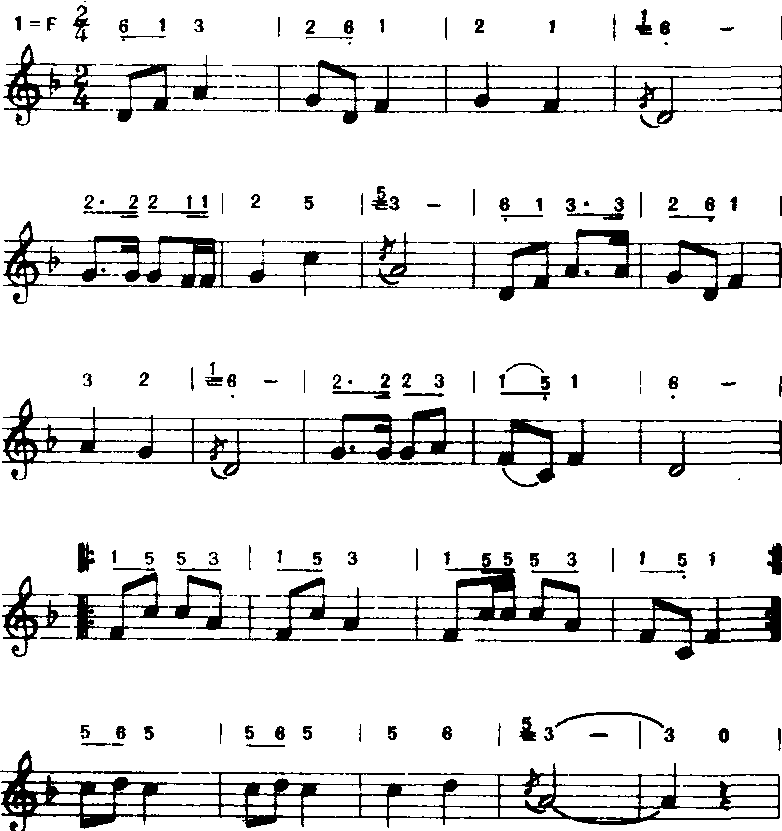 释义 | 调式、调性对比 调式、调性对比Diaoshi diaoxing duibi通过调式、调性的变换,使歌曲旋律产生对比手法。常在歌曲情绪开展、转折的地方应用。此手法可分为三类: 以上歌曲的A段是以D为主音的五声羽调式,B段是以F为主音的五声宫调式既换了调式,又换了主音(同宫系统的调式转换)。调式、调性对比手法的运用一定要根据歌词内容的需要和感情色彩的变换而定,才能达到预期要产生的对比效果。 ☚ 对比 高潮的形成 ☛ |