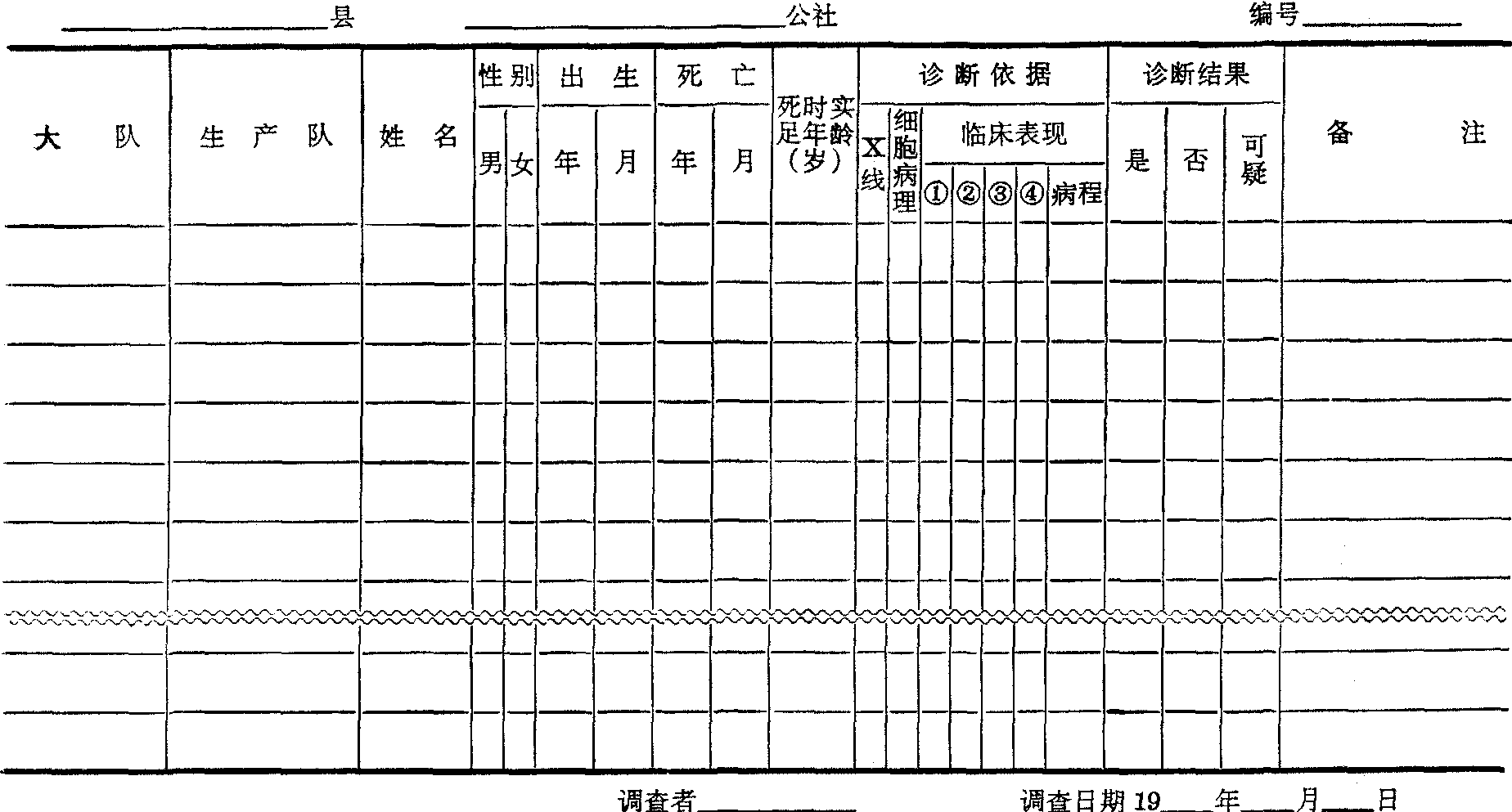 说明: (1)本表只填写全部死者中初步推定为食管癌的死者。