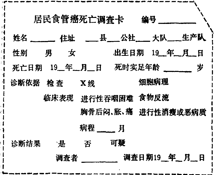 表1 居民食管癌死亡调查表