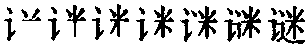【提示】讠,2画,第二笔一笔连写,不是一横折、一提两笔。米,中间是竖,不是竖钩。米与辶,末笔原本都是捺,为避重捺,米末笔捺改点。辶,3画,上面一点,旧字形4画,上面两点; 第二笔宋体是横折,楷体是横折折撇。 *谜(謎)mí11画 言部 (1) 谜语,用一句或几句话组成的隐语,暗指一种事物或文字,供人猜测: ~底|猜~|灯~。 (2) 喻指还没有弄明白或难以理解的: ~团|飞碟之~。 谜謎mí古代作迷。指一种隐语。如:迷语。是影射事物或文字的隐语。中古加言旁,作谜。从言从迷,迷亦声。如:灯谜|谜底。又比喻还没有弄明白的或难以理解的事物。 谜謎★繁◎常★常
