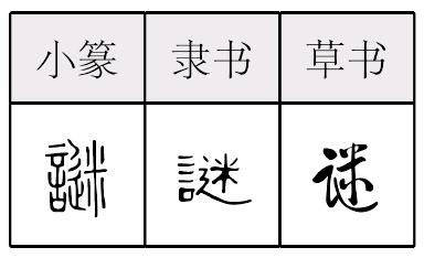 mí謎,形声,从言,迷声,本义为谜语,引申为未被弄明白或难以理解的事物。《简化字表》类推简作“谜”。 |
