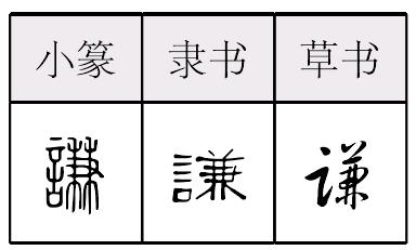 释义 | 谦 谦衡量一个人精神品格、道德修养的标准之一,指谦虚、谦逊、谦和等。“谦”能对人恭敬,人则对谦者敬重。《尚书·大禹谟》。“满招损,谦受益。” (章) ☚ 禅 心香 ☛ 谦读音q·ian(ˋ),为ian韵目,属an—ian—uan—üan韵部。苦簟切,上,忝韵。 上一条: 傔 下一条: 謙 谦读音q·ian(-),为ian韵目,属an—ian—uan—üan韵部。苦兼切,平,添韵。 上一条: 幵 下一条: 謙 谦〔qian〕 ![]() ![]() ![]() 谦〈隐〉清末以来参燕业指数目一。参“谦、熏、项丁、孝郎、尺郎、局郎、仙郎、少郎、欠郎、药花”。 谦謙qiān虚心 谦虚心;不自满:~虚︱~和︱~恭︱~让︱~逊︱~卑︱~辞︱自~︱过~︱~~君子︱满招损,~受益。 谦qiān虚心:谦恭│谦受益,满招损。 谦qian谦卑 谦辞 谦恭 谦光 谦和 谦谦 谦让 谦顺 谦虚谦逊 谦挹 卑谦 过谦 自谦 谦恭虚己1 谦谦君子2 谦虚谨慎一谦四益3 谦受益,满招损 谦qiān谦逊:这才好呢,这才是读书知礼的。越自己~,越尊重。(六三·1486)不是~,只怕行不上来,倒是笑话了。(四十·925)不要太~,我们且赏鉴,自然是好的。(七十·1712) 谦qiān古代名物 > 占相類 > 易占部 > 卦爻 > 謙 謙 qiān 《易》卦名。六十四卦之一,艮下坤上,地山謙,䷎。《序卦》:“有大者不可以盈,故受之 以謙。”《雜卦》:“謙,輕而豫怠。”《易·謙》:“謙,亨。君子有終。”《象》:“地中有山,謙。君子以裒多益寡,稱物平施。”後代星術家又推演出:謙爲兑宫八卦中五世卦,五行屬金。小周天火候圖中主初七日晝。 谦qiān旧时参燕业谓数目一。参“谦、薰、项丁、孝郎、尺郎、局郎、仙郎、少郎、欠郎、药花”条。 满;谦○满mǎn(形)骄傲:自~|~招损,谦受益|骄傲自~。 ●谦qiān(形)谦虚:~恭|~让|~和|~顺|~逊|~卑|~辞|自~|过~|~~君子。 谦qiān〖形容词〗 谦qiān❶ 谦逊,谦虚。《尚书·大禹谟》:“满招损,~受益。”《信陵君窃符救赵》:“公子为人,仁而下士,士无贤不肖,皆~而礼交之。” 谦*謙qianC7AB 谦让 谦让让(让挹;让谦;敦让;冲让;逊让;推让;拟让) 挹 谦(谦避;谦退;谦损;谦揖;谦辞;谦托;退谦) 攘(逊攘) 避 谢 蹲节推逊 拟逊 拟挹 拟退 廉拟 损抑 损挹 抑损 另见:谦虚 谦逊 退让 原谅 争抢 ☚ 辞让 礼让 ☛ 谦虚 谦虚谦(谦冲;谦益;谦光;谦尊) 虚(虚中;虚怀) 逊 欿(自视~然) 另见:谦让谦辞 让人 恭敬 ☚ 虚心 不骄傲 ☛ 恭谨 恭谨悫 慺 愿恭 慎愿 肃谨 敬慎敬谨 敬顺 恭畏 雁行 恪恭 恪慎 恭恪 共恪 敬恪 只恪 只翼 只慎 钦慎 ☚ 庄敬 尊敬 ☛ 谦謙qiān苦兼切,平添。谦逊。《书·大禹谟》:“满招损,~受益。” 谦中国古代道德规范。最早见于《易经》第十五卦,认为谦是君子的美德,卦辞说:“谦,亨,君子有终。”《初六》爻辞:“谦谦君子,用涉大川,吉。”又将谦德分为三种:1“鸣谦”,指明智的谦虚;“劳谦”,指任劳任怨勤苦为上的谦虚;“㧑谦”,指施德惠于人而谦虚。《易传》认为,谦虚是君子处卑以治理自己的美德。《易传》谦卦象辞说:“谦谦君子,卑以自牧也。”认为谦而劳于事,是所以得到人民尊仰的原因, “劳谦君子,万民服也” (同上书)。《大学》立“自谦”之义,以释“诚意”,说:“所谓诚其意者,毋自欺也,如恶恶臭,如好好色,此之谓自谦。”北齐刘昼发挥《易传》“卑以自牧”的思想,以“降己”释谦。他说:“谦者,在于降己,以高下卑,以圣从鄙”(《刘子·明谦》)。认为君子之谦是“在荣以挹损为基,有功而不矜,有善而不伐。”提出“心谦”,从心里“遗其功”,“忘其善”。姚兴视谦为圣王贤臣之德。《晋书》载姚兴语:“殷汤夏禹,德冠百王,然犹顺守谦冲,未居崇极。”亦认为是为臣之德,《晋书·周访传》:“访智勇过人,性谦虚,未尝论功伐。”毛泽东认为谦虚是中国古代传统美德,提出“谦虚使人进步,骄傲使人落后”,有很大影响。 谦 039 谦伦理思想概念之一。语出《周易·谦卦》,指小心谨慎,不骄傲自满。《易传·彖》中说:“天道亏盈而益谦,地道变盈而流谦,鬼神害盈而福谦,人道恶盈而福谦。谦尊而光,卑而不可逾,君子之终也,与满相对立。”《尚书·大禹漠》有“满招损,谦受益”的记载。朱熹注:“谦者,有而不居之意”。《说文》释之为 “敬也”,《玉篇》释之为“让也”,《增韵》释之为“致恭也”。谦还有轻、损、不自重大等意。是从个人待人待己的态度所表明的品质特征,是一种被道德所肯定的美德。 ☚ 修齐治平 四维 ☛ 谦中国古代伦理学范畴,与盈相对。指小心谨慎,不自满。《易传·彖》:“天道亏盈而益谦,地道变盈而流谦,鬼神害盈而福谦,人道恶盈而好谦。谦尊而光,卑而不可逾,君子之终也。”朱熹注:“谦者,有而不居之意。” 谦qiān虚心,不高傲。如:谦虚,谦让, 自谦,谦词(辞)。 谦(謙)qiānⅠ (谦虚) modest: 过 ~ too modest; ~ 和 modest and amiable; 自 ~ modest about oneself Ⅱ (姓氏) a surname: ~ 卫 Qian Wei 谦Qian(modesty) 谦qiān❶ 谦謙qiān(12画) *谦(謙)qiān12画 言部 虚心: ~虚|~卑|~和|自~。 谦謙qiān小篆以来的形声字。从讠(言),兼声。声母演变为旁纽双声,如兼歉坚悭(qiān)、今黔例。指虚心,不自高自大。如:谦虚|谦让|谦词。 谦謙★繁◎常★常qiān謙,形声,从言,兼声,虚心敬让,不自高自大。《简化字表》类推简作“谦”。 |