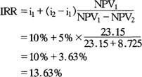释义 | 内部利率法 以内部利率为指标的投资方案评价方法。 内部利率指使投资的现金流量现值为零的折现率。这是对净现值法的补充,净现值法在使用时须事先指定一个目标收益率或贴现率,而计算的结果只说明了投资项目是否达到或超过这个标准,但却未求出项目实际达到的效率,而且指定一个适当的贴现率很不容易。 内部利率法求得的利率是项目实际能达到的投资效率即内部收益率,而不用事先给定贴现率。 根据净现值的定义: 故内部利率为使方程 例:某项目期初(第1年年初)固定资产投资100万元,投产时需流动资金投资20万元。 该项目从第3年初投产并运行,每年需运营费40万元。若项目每年可获销售收入65万元,项目服务年限为10年,预计残值20万元,设折现率为10,求净现值。 先取i2=10%,计算如下: NPV1=-100-20×(P/F,10,2)+(65-40)×(P/A,10,10)×(P/F,10,2)+(20+20)×(P/F,10,12) =-100-20×0.8264+25×6.144×0.8264+40×0.3186 =23.15(万元) 再取i2=15%,计算如下: NPV2=-100-20×(P/A,15,2)+(65-40)×(P/A,15,10)×(P/F,15,2)+(20+20)×(P/F,15,12) =-100-20×0.7562+25×5.2337×0.7562+40×0.1869 =-8.725(万元) 因此: 即该项目的内部利率为13.63%。 动用内部利率法评价投资方案的规则是,在只有一个备选方案的采纳与否的决策中,如果计算出的内部利率大于或等于资金成本或期望报酬率,就可接受该方案,反之应拒绝。在多个方案中,则应选择内部利率最高的投资方案。 |