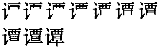 谭读音t·an(ˊ),为an韵目,属an—ian—uan—üan韵部。徒含切,平,覃韵。 ❶姓。 ❷大;光大。孔广森注:“谭,大也。” ❸同“谈”。《三国志》:“此老先生之常谭。” 上一条: 鐔 下一条: 譚 谭譚《广韵》徒含·覃;dná‖tán说:七~八~cīt dná buēh dná(胡言乱语) ❍ 汝呣知头天,呣通甲人乱~lǐ zāi táotnī,tāng gāh lang luân dná(你不知底细,不要跟人家乱讲)。清·朱骏声《说文通训定声》:“談,語也。字亦作譚。”陆德明释文:“譚,本亦作談。”成玄英疏:“譚,猶稱說也”。《三国志·魏志·管辂传》:“此老生之常譚。”宋·辛弃疾《千秋岁·为金陵史致道留守寿》:“金湯生氣象,珠玉霏譚笑。”《初刻拍案惊奇》卷三八:“聞得樞密院東有個算命的,開個鋪面,譚人禍福,無不奇中。” 谭譚{}五6957①动说(贬)。晋语。山西忻州〖 〗。你可能瞎~哩!②动打岔。闽语。福建厦门〖 〗。乱~乱打岔‖𪜶咧商量,汝呣嗵共伊~他们在商量,你别给打岔。③名差错。闽语。福建厦门〖 〗。重~差错。   谭譚tán姓。 谭tán❶ 同“谈”。 ❷ 姓。 谭tán旧时山东地区市井经纪人谓数目二。参“丁、谭、品、吊、拐、闹、柴、别、弯、卡”条。 谭tán〖动词〗 用同“谈”。谈论,称说,讲习(1)。《袁州州学记》:天下治,则谭礼乐以陶吾民。——天下太平,就讲习礼乐来感化我们的百姓。 谭tán❶ 大,宏大。《大戴礼记·子张问入官》:“富恭有本能图,修业居久而~。” ❷ 延,延及。《管子·侈靡》:“上短下长,无度而用,则危本不称,而祀~次祖。” ❸ 通“谈”。谈论,谈说。《庄子·则阳》:“夫子何不~我于王?”《三国志·蜀书·庞统传》:“先主见,与善~,大器之,以为治中从事。” 谭*譚tanCCB7 ❶与“谈”同。谈论:老生常~/天方夜~。 ❷<文>大;光大:修业居久而~(《大戴礼记》)。 ❸春秋时国名。在今山东章丘西。 ❹姓。 话语 话语话(话头;闲~) 言 语(语言;语词;语话言语) 谈 谭 敬称他人的话语:金口 成句的话:语句 一句话:一言 一句 只句 只语 话语气势豪迈,坚定有力:掷地有声 掷地赋声 掷地金声 金声掷地 开头的几句话:开门炮 某一活动正式开始前说的一段话:开场白 民间没有知识的人说的话:里巷之谈 零星、不完整的话:片语单词 只字单词零言碎语 单词片语 口头转告的话:口信 柔和而委婉的话语:软语 许许多多要说的话:千说万说 千言万语千语万言 千章万句 万语千言 话如泉水涌出一般:言泉 生气发怒时说的话:变色之言 (说的话:话语) ☚ 话语 言语 ☛ 谭tán❶同“谈”。 ❷姓。 谭(譚)tánⅠ ❶ [书] (延及) extend; stretch; spread ❷ [书] (连属, 接连不断) join; link ❸[书] (光大) glorify; carry forward; develop ❹(谈说, 称说) talk; chat; speak; discuss Ⅱ ❶(话语) word; talk ❷(古国名) Tan (an ancient state in China) ❸(姓氏) a surname: ~ 嗣同 Tan Sitong 谭tán❶ 谭天说地