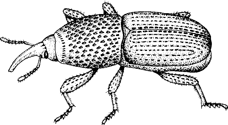 释义 | 蛀虫 蛀虫粮食、物品的蛀虫:蠹(蠹虫;蠹蝝) 蛀(蛀虫) 虫蝨 ☚ 各种害虫 吸人血的虫 ☛ 谷象granary weevil重要初生性贮粮害虫,中国对外检疫对象。学名Sitophilus granariusLinnaeus。鞘翅目,象虫科。原产亚洲或地中海地区,随粮食调运,已成为世界性分布的贮粮害虫。分布于美洲、欧洲大部和苏联,澳大利亚,印度和北非等;中国的新疆及甘肃局部地区亦有分布。寄主有小麦、大麦、燕麦、稻米、稻谷、玉米和高粱等。也为害橡实、栗子、向日葵子。成虫啮食完整粮粒。产卵粮粒内,幼虫孵化后蛀食内部形成空壳,也能为害较大碎粒和结块加工粮。促进螨类和多种霉菌的发展,引起粮食发热发霉变质。 谷象 成虫寿命7~8个月,越冬成虫可达10~15个月或更长。产卵期67~287天。一生产卵36~254粒。成虫在相对湿度80~90%、温度20~25℃能耐饥35天;16~18℃时为43天; 10~13℃时为48天。成虫在13℃时行动正常,7℃时不能正常爬行,4℃不能爬行。各虫态抗低温的能力成虫>蛹>幼虫>卵。成虫在0℃下65~81天、—5℃下26~31天、—10℃14~22天、—15℃下7~19小时死亡。在21℃、相对湿度80%时,各虫态发育平均天数:卵5天;1龄幼虫7天,2龄幼虫7天,3龄幼虫6天,4龄幼虫15天;蛹9天。仅限于仓贮粮内生活。 加强检疫检验以控制传播。检查船仓或其运载工具的四壁及阴暗处有无成虫,并筛取粮食检查。对可疑样品,用X光检验粮粒内有无幼虫和蛹,一经发现采用溴甲烷熏蒸。仓贮粮食可用磷化铝熏蒸除治。 谷象granary weevilSitophilus granarius L. ,昆虫纲,鞘翅目,象虫科。重要初生性贮粮害虫。分布于新疆、甘肃、四川等省区;欧洲、美洲,北非,印度,澳大利亚也有分布。成虫和幼虫为害谷类及其加工品、油料、薯干及干果等。成虫体长3~4 mm,长椭圆形,赤褐色,有光泽,前胸具大而稀的椭圆形点刻;鞘翅暗褐色,被卧鳞片,后翅退化。末龄幼虫体长2.5~3 mm,乳白色,背面隆起近半圆形,无足,第1至4腹节背板被横皱,分为明显三部分。一年发生3~4代,以成虫为主、幼虫为次在仓内越冬。成虫啮食完整粮粒,行动迟钝,具假死性,仅在仓内繁殖,卵产于粮粒内,幼虫蛀食粮粒成空壳,也为害较大碎粒和结块加工粮,引起粮食发热、发霉变质。此虫仅依靠人力传播和在仓内繁殖为害,故保持仓内清洁卫生和应用药剂消毒是防治的有效措施。 |