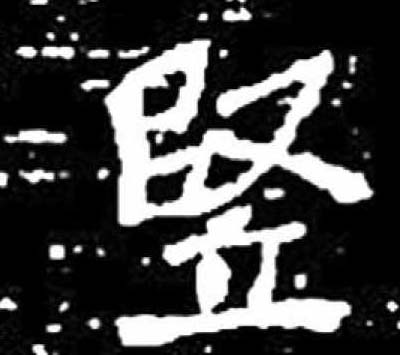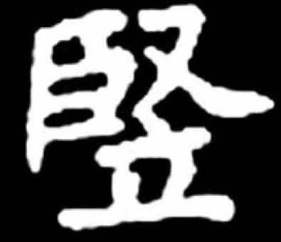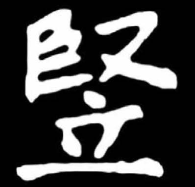 豎竖, 金文; 篆shù[目(意符)+尌(聲符)→ 豎(《説文》:“豎,豎立也。從臤,豆聲。”豎,直立;漢字筆形之一,自上往下;上下的或前後的方向,與“橫”相對。豎,尌豎的後起字。後又加臣,擬爲眼“豎立”。又“寸”向上移變爲“又”,但意思未變,初文“寸”和“又”都是人的“手”。“豈〈鼓〉”訛變爲“豆”,後又簡爲“立”,因“立”爲站立,與“樹”“豎”通。物體與地面相垂直叫豎立。漢字的筆劃從上到下叫一豎(“丨”)。古人稱童僕叫“豎子”,這可能因爲童僕總是經常站立在主人旁邊侍候的緣故。)] [唐] 房玄齡等《晉書·阮籍傳》:“時無英雄,使豎子成名。”(即山中無老虎,猴子成大王。) 豎 ☚ 堅 臣部 ☛ 00000941 |