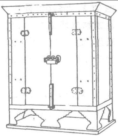 立式櫃。櫃身較高大,前開門扇,内設横隔或抽屜。多用以放置餐具、書籍、衣服及其他日用物品,取放方便。隋唐之際已有豎櫃之制,然仍以卧櫃最常見。至明清時,日常所用已多爲竪櫃。《舊唐書·楊慎矜傳》:“〔盧鉉〕與御史崔器入城搜慎矜宅,無所得,拷其小妻韓珠團,乃在竪櫃上作一暗函,盛讖書等。”《太平廣記》卷二百零五引《傳記》:“李龜年善羯鼓,玄宗問:‘卿打多少枚? ’對曰:‘臣打五十枚訖。’上曰:‘汝殊未。我打却三豎櫃也。’”參見本類“卧櫃”。